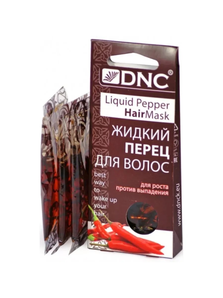 Жидкий перец для волос DNC, 3х15 мл.Действие экстракта перца и комплекса активных растительных компонентов направлено на создание положительного стресса для кожи головы и луковиц волос и их усиленную питательную поддержку. Вызванный препаратом прилив крови активизирует замедленные обменные процессы и способствует укреплению ослабленных корней волос. Расширенные под действием маски поры и более интенсивный кровоток позволяют обеспечить эффективное питание и стимуляцию роста волос.За полчаса до мытья волос нанесите состав на кожу головы и укутайте с помощью пленки. Перед использованием пакетик можно положить в горячую воду, что бы слегка подогреть. Смойте обычным шампунем. Не наносите на поврежденную кожу и избегайте попадания в глаза и на кожу лица. Смойте раньше, если жжение кажется вам слишком сильным. Действие перца можно ослабить, разбавив состав любым растительным маслом.