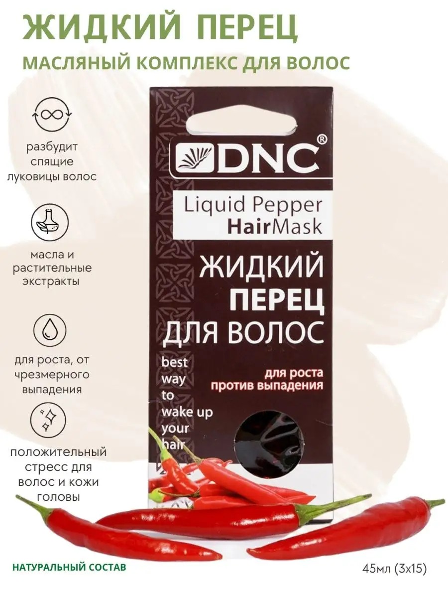 Liquid Pepper. Oil Complex for Active Growth and Against Hair Loss, 45 ml (3x15). Pepper extract and a complex of active plant components create a positive stress relief for the scalp and hair follicles, providing enhanced nutritional support. The resulting blood flow activates slowed metabolic processes and helps strengthen weakened hair roots. Enlarged pores and increased blood flow, thanks to the mask, provide effective nutrition and stimulate hair growth. Directions: Apply the mixture to the scalp 10-20 minutes before washing and wrap with plastic wrap. Before use, place the sachet in hot water to warm it slightly. Rinse with regular shampoo. Do not apply to damaged skin, avoid contact with eyes, face, and mucous membranes! Rinse early if the burning sensation is too severe. The effect of pepper can be reduced by diluting the mixture with any vegetable oil. Do not use more than once or twice a week. Ingredients: Ricinus Communis Seed Oil (Castor Oil), Prunum Armeniace Kernel Oil (Apricot Oil), Capsicum Frutescens (Chili) Fruit Extract (Red Pepper Extract), Hippophae Rhamnoides Oil (Sea Buckthorn Oil), Tocopherol Acetate (Tocopherol), Citrus Aurantium Bergamia Fruit Oil (Bergamot Oil), Pinus Sibirica Nut Oil (Cedar Oil), Retinyl Palmitate (Vitamin A), Citrus Grandis Fruit Oil (Grapefruit Oil).