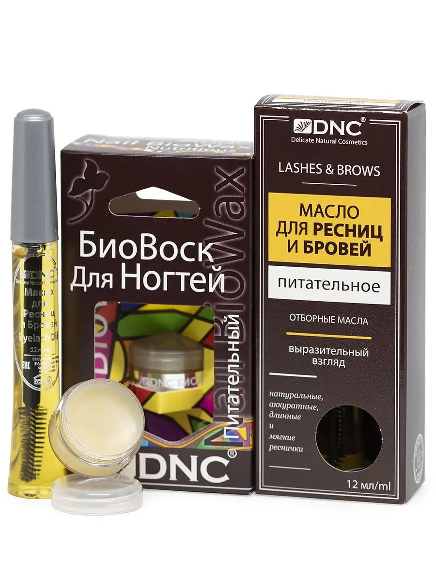 DNC Набор для ухода "Питательный": Масло для ресниц и бровей, Биовоск для ногтей (12 мл, 6 мл)