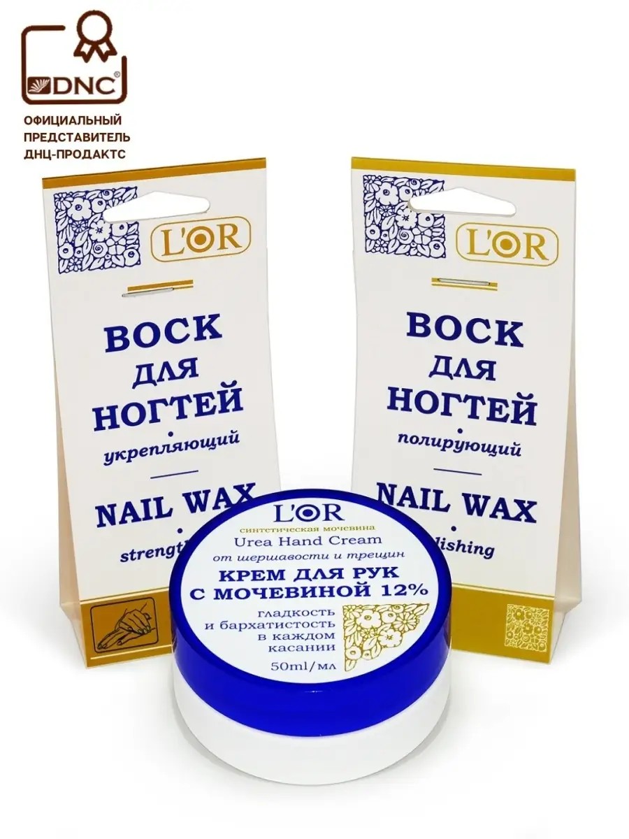 | Package contents | Polishing wax, wax for nails and cuticles, for sealing, for manicure - 1 pc; Strengthening wax, wax for nails and cuticles, for manicure - 1 pc; Softening hand cream with 12% urea - 50 ml - 1 pc. |