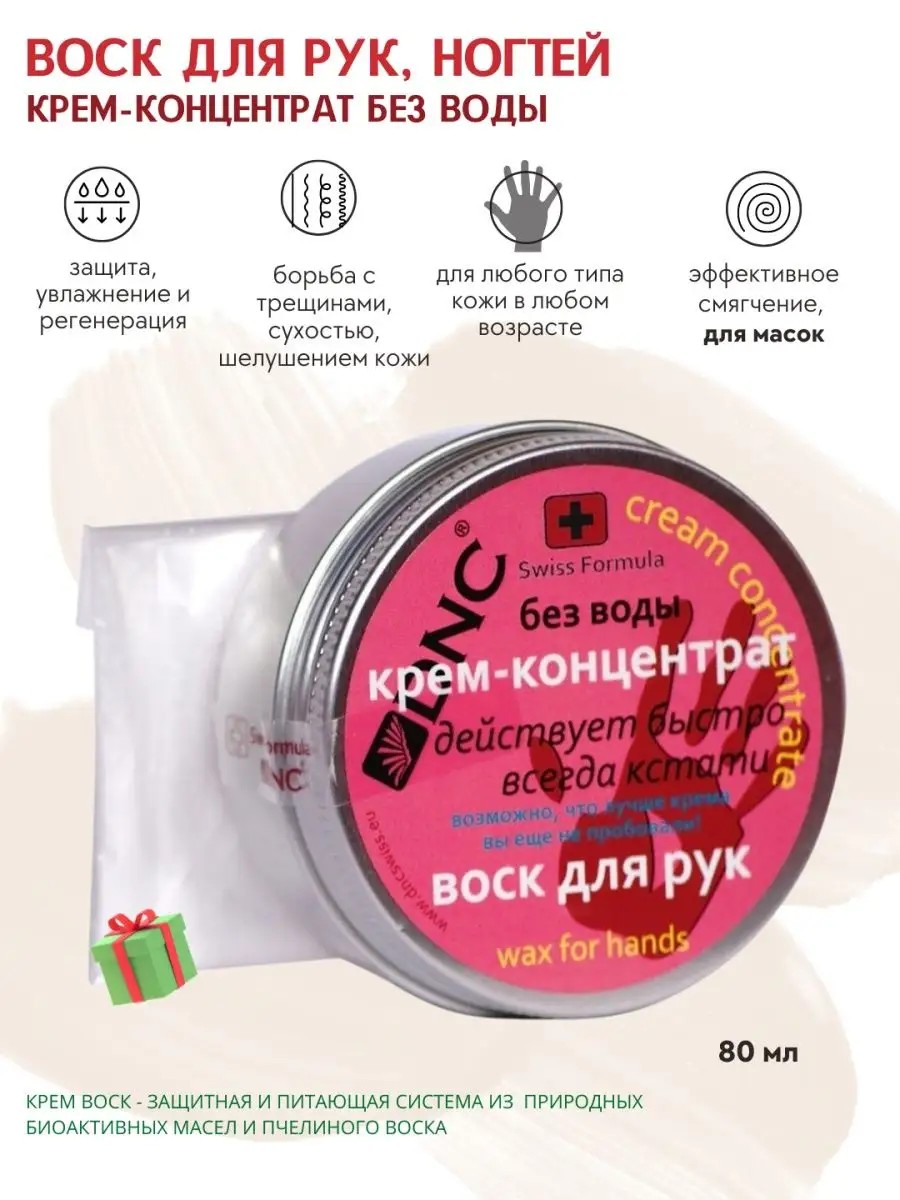 Крем воск для рук. Swiss Formula. Натуральный состав. Плотный и концентрированный крем для ухода за кожей рук и ногтями. Действует сразу, очень эффективен при трещинах, огрубении, сухости и шелушениях. Содержит только натуральные, активно действующие компоненты. Идеально защитит кожу в самых тяжелых условиях. Не содержит воды, можно пользоваться на морозе. Особенно эффективен в качестве маски, нанесите воск на кожу рук и наденьте на некоторое время п/э перчатки (в комплекте), маску с косметическими перчатками можно оставить на всю ночь.