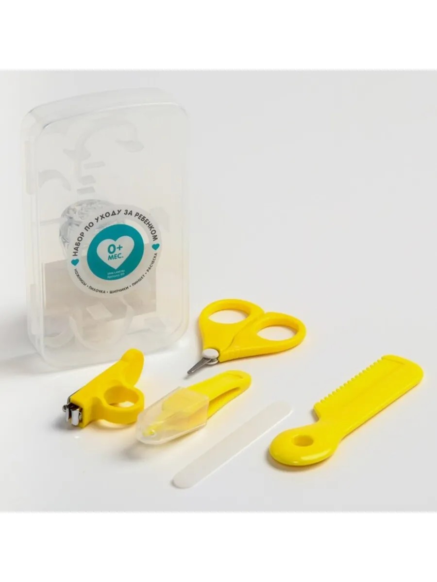 Набор по уходу за ребенком Крошка Я включает в себя 5 необходимых предметов: расческу, пинцет, ножницы, книпсер и пилку, выполненных в ярком желтом цвете. Каждый элемент разработан с учетом комфорта и безопасности. Закругленные кончики гарантируют безопасность во время использования, а мягкая пилочка бережно заботится о нежной коже малыша. Удобные щипчики легко удерживать в руке, а ножницы и пинцет имеют операционные размеры: длина ножниц составляет 8 см, пинцета - 9 см, а щипчиков - 6 см. Длина расчёски достигает 11,5 см, а пилочки - 9 см. Набор поставляется в контейнере с наличием чехла для удобного хранения. Изделия не содержат вредного вещества бисфенол А и подходят для новорожденных. Уникальный дизайн добавляет привлекательности, а русская упаковка делает его понятным для всех. Этот маникюрный набор станет незаменимым помощником в уходе за малышом.
