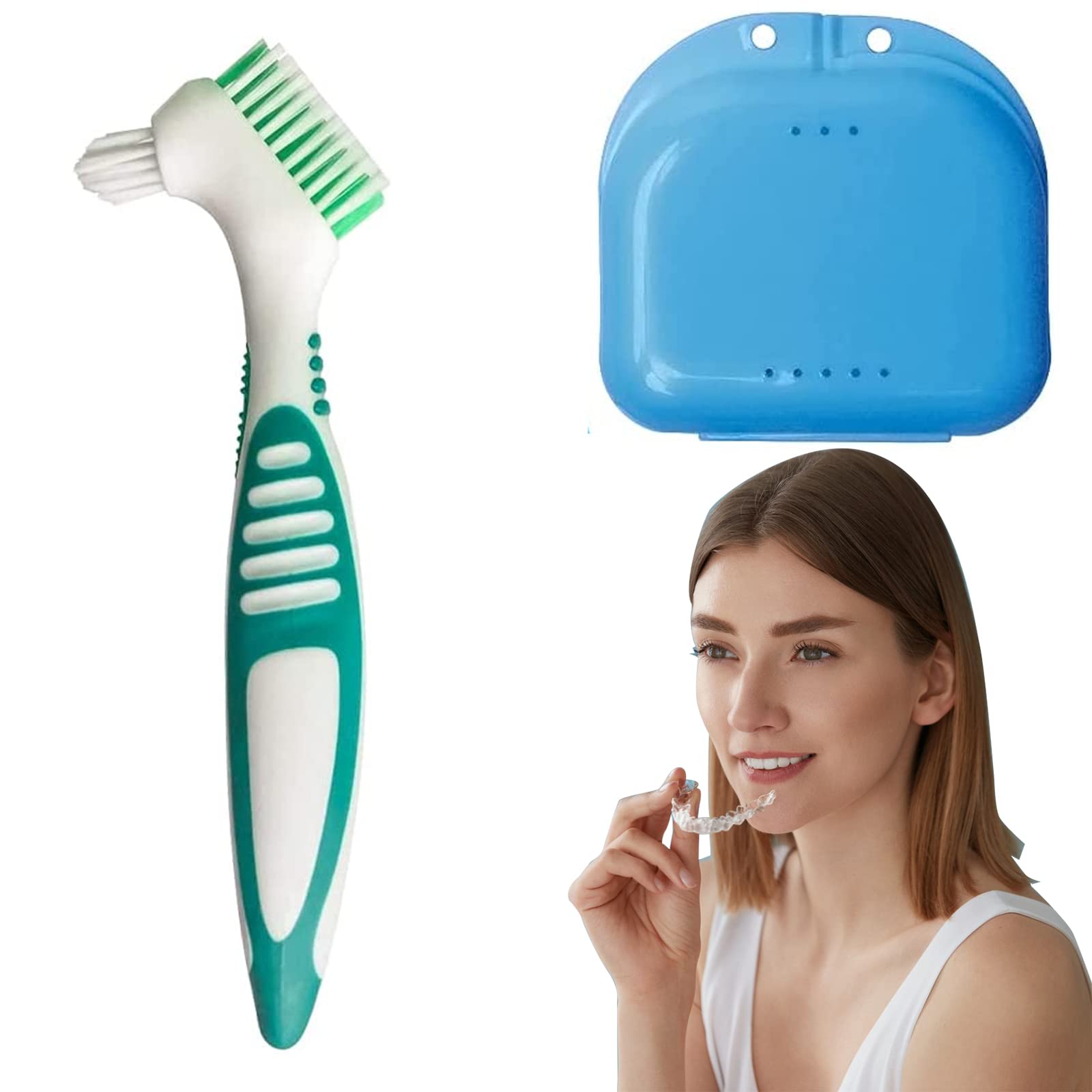 Zahnspangendose,Spangendose,Aufbewahrungsbox für Prothesen,kieferorthopädische Box,Aufbewahrungsbox für Sanitäranlagen, Prothesendose Set mit Prothesenreinigungsbürste