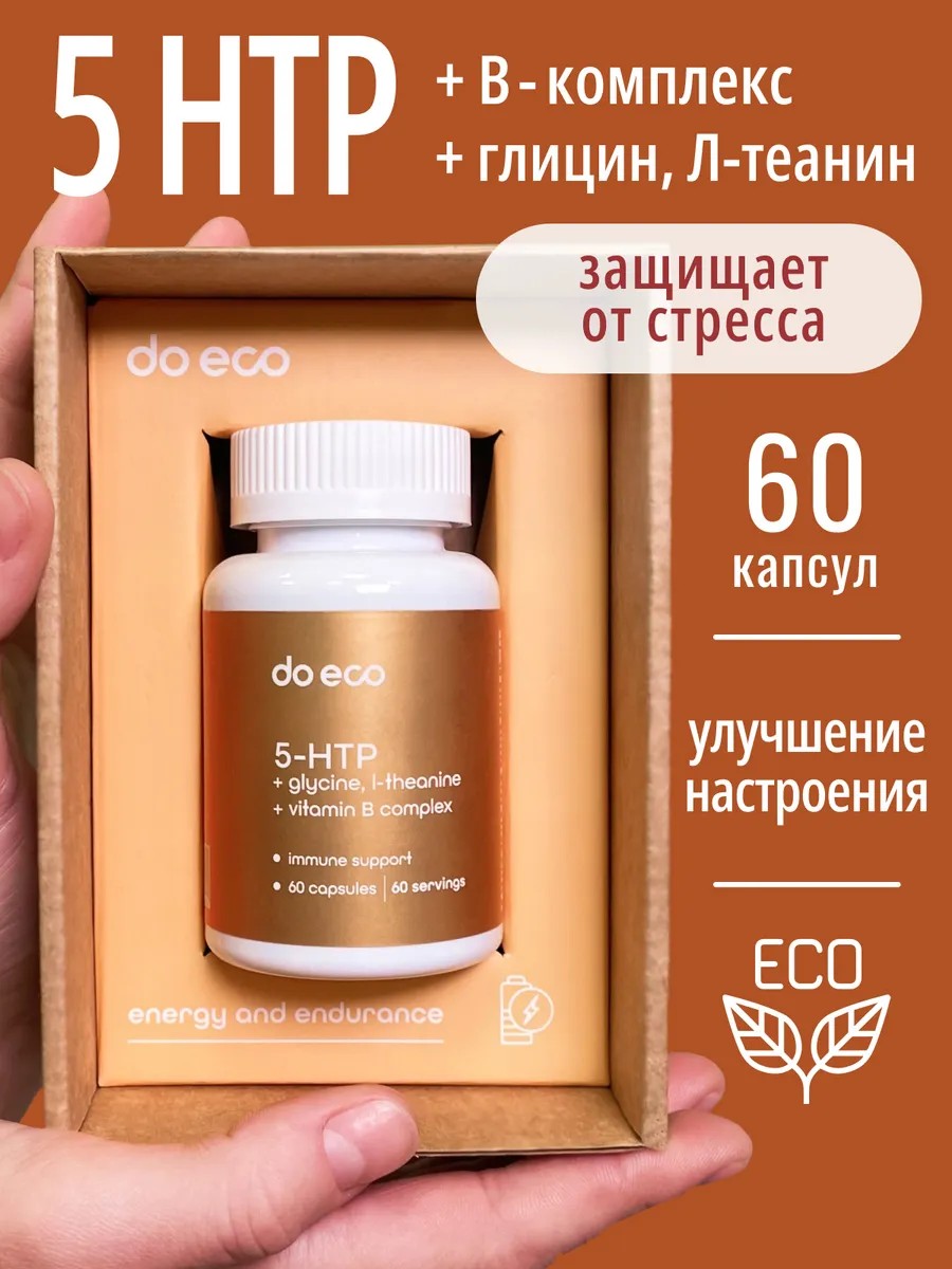 5-НТР с глицином, L-теанином и витаминами группы В от do eco - комплекс для улучшения работы мозга с антистрессовым эффектом. Биологически активная добавка содержит активные аминокислоты и витамины B3 и B6 в легкоусвояемых формах.
