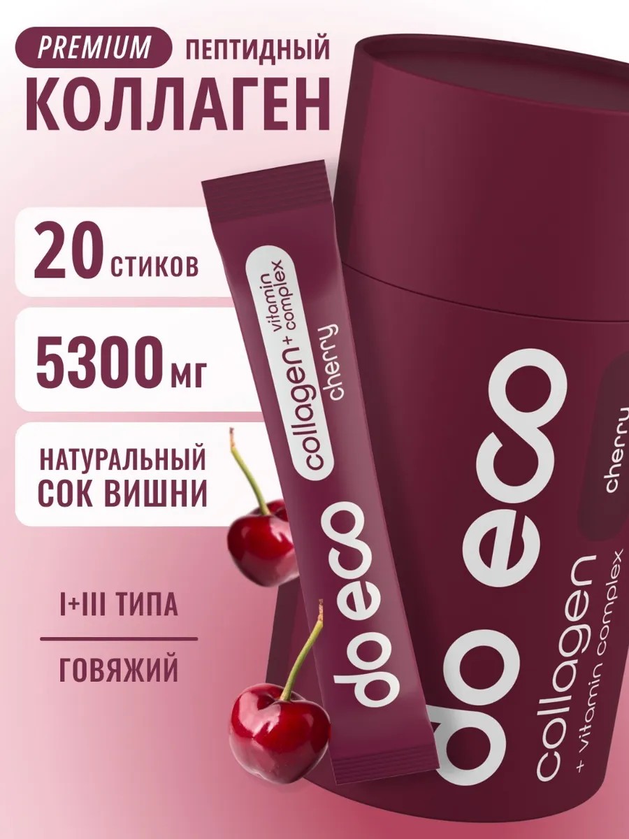 DO ECO Коллаген PREMIUM с витаминами, порошок в стиках, вкус Вишня
