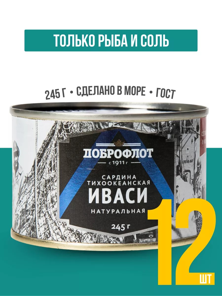 Доброфлот Консервы рыбные сардина (иваси) натуральная 245 г, 12 шт