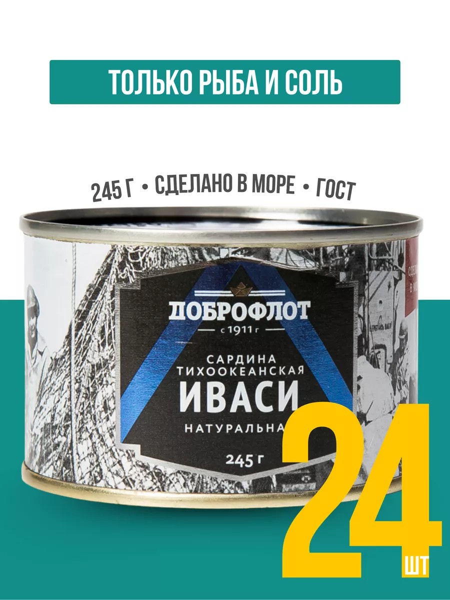 Доброфлот Консервы рыбные сардина (иваси) натуральная 245 г, 24 шт