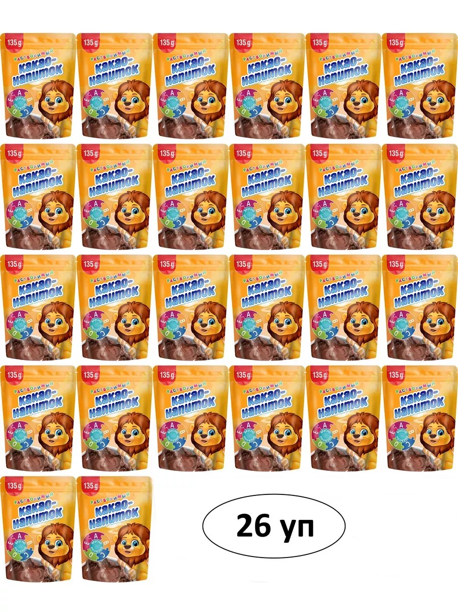Добрыня-Русь, Какао-напиток детский растворимый 26 уп по 135 гр. Какао-порошок – сладкий продукт из нашего детства, который любят взрослые и дети. Какао напиток очень полезен для здоровья и хорошего настроения. Шоколадный напиток улучшает кровоток, разжижает кровь, снижая артериальное давление, а также повышает процент «хорошего» холестерина в сосудах. Порошок регулирует усвоение сахаров и углеводов, снижает аппетит и повышает активность механизмов переработки жиров в энергию.