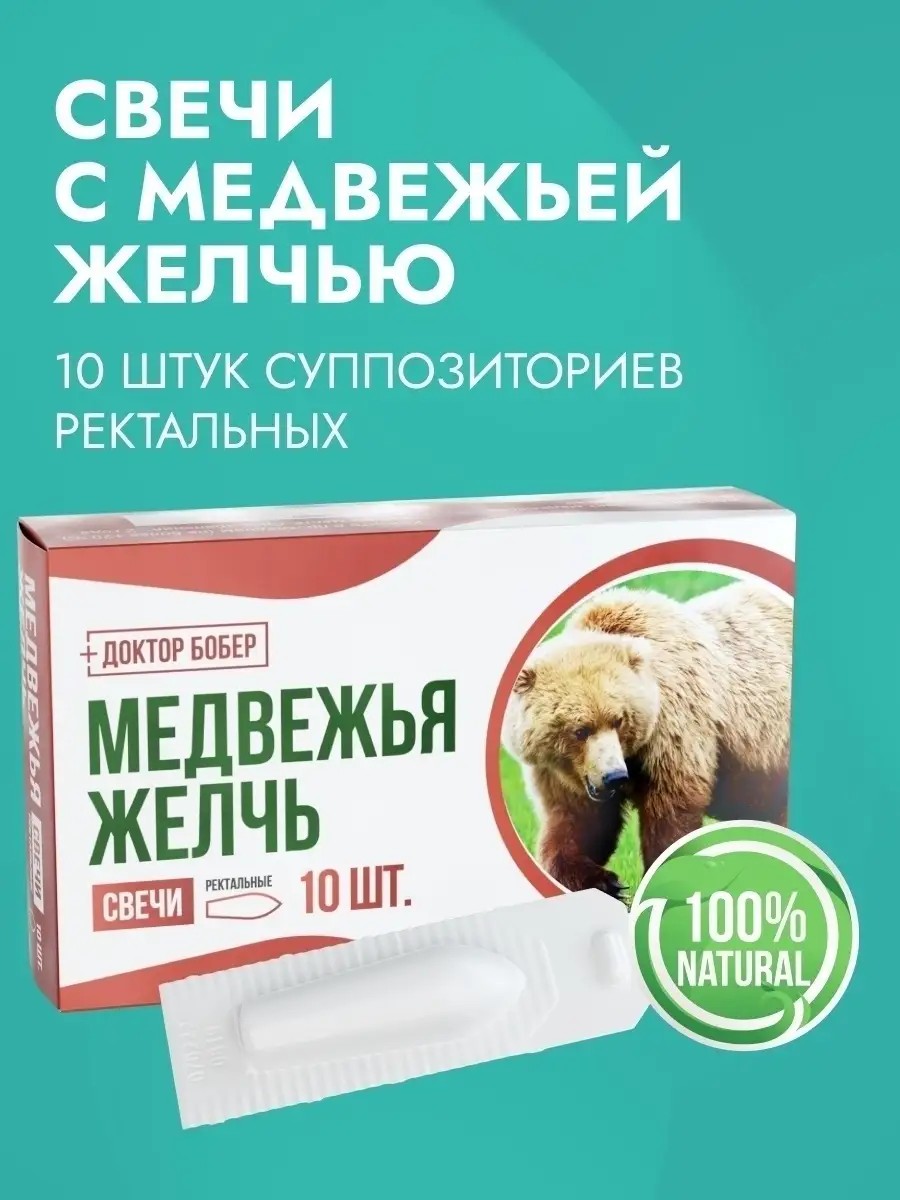 Доктор-Бобер Свечи с медвежьей желчью, против паразитов и геморроя