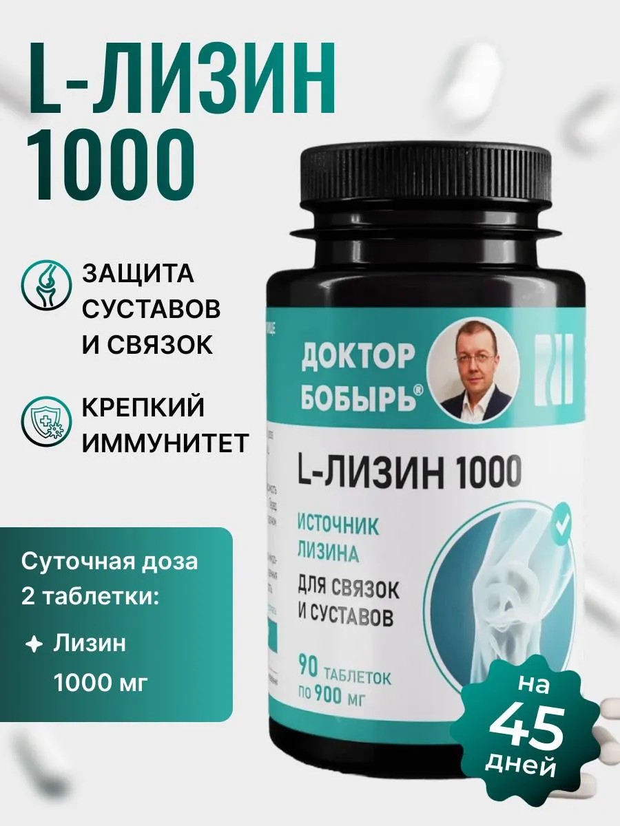 Доктор Бобырь Аминокислоты L Лизин витамины для суставов и связок 90 шт