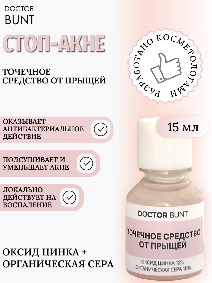 Точечное средство от прыщей Doctor Bunt – это эффективное решение для борьбы с акне и воспалениями на лице, шее, декольте и теле. Его формула, обогащенная оксидом цинка, метилсульфонилметаном и каолином, оказывает мощное антибактериальное действие, помогая быстро снять покраснения и уменьшить размер воспалений. Средство от прыщей не только борется с существующими проблемами, но и предотвращает появление новых прыщей, благодаря своим антисептическим свойствам. Легкая текстура сыворотки быстро впитывается, не оставляя липкости и жирного блеска, что делает ее идеальным выбором для жирной и проблемной кожи. Doctor Bunt – ваш надежный помощник в борьбе за чистую и здоровую кожу.