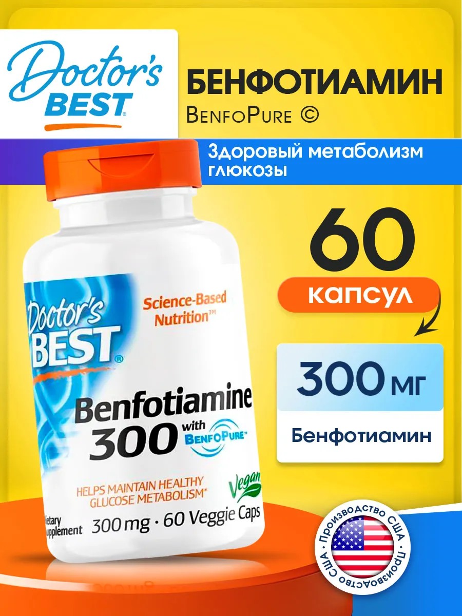 Doctor's BEST Бенфотиамин с BenfoPure, Benfotiamine 300 мг, 60 капсул