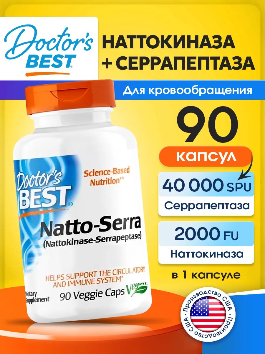Doctor's BEST Наттокиназа Серрапептаза ферменты для пищеварения 90 капсул