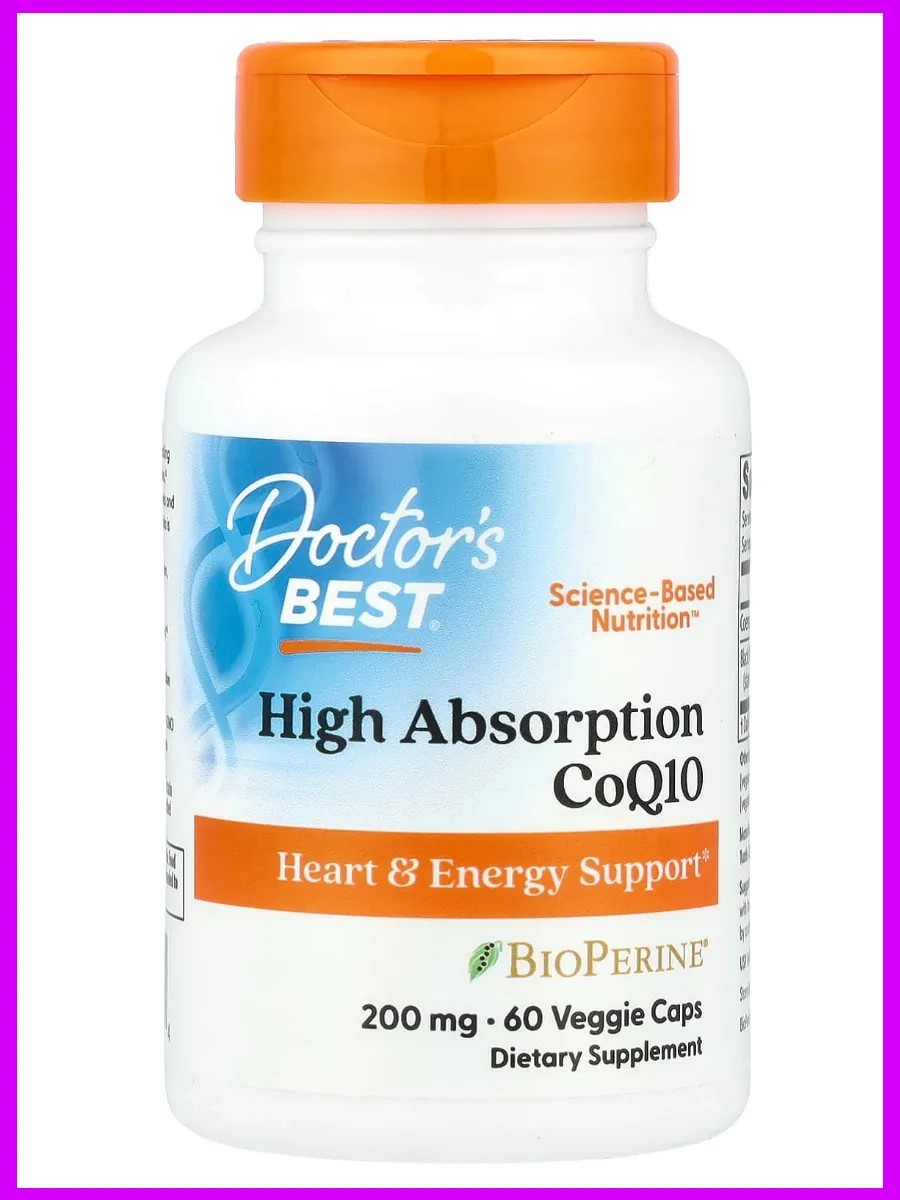 Коэнзим Q10 с высокой степенью усвояемости от Doctor's Best содержит чистый коэнзим Q10 (убихинон) и BioPerine. Коэнзим Q10 поддерживает функцию сердца и жизненно важен для производства аденозинтрифосфата (АТФ), особенно в сердечной мышце. Стресс, свободные радикалы, статины и старение могут отрицательно влиять на уровень коэнзима Q10. Коэнзим Q10 очень важен для производства энергии, сокращения мышц и синтеза протеина. Исследования показали, что BioPerine увеличивает абсорбцию коэнзима Q10.