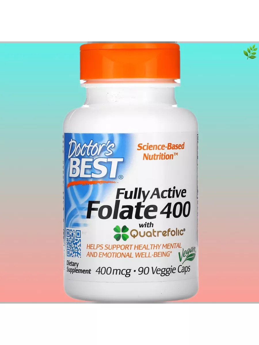 Полностью активный фолат400 от Doctor's Best с Quatrefolic содержит глюкозаминовую соль (6s) -5-метилтетрагидрофолата Quatrefolic, наиболее биодоступную форму фолиевой кислоты, обеспечивающую большую стабильность и растворимость в воде.