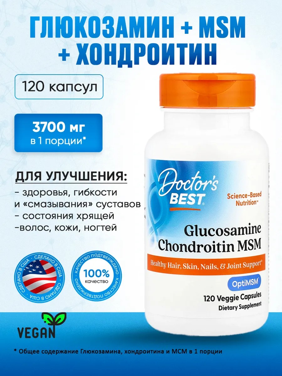 Doctor's BEST Глюкозамин + Хондроитин + МСМ (США, 100% оригинал) 120 кап