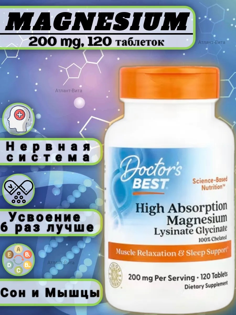 Магний от Doctor's Best обеспечивает ежедневную дозу магния с высокой степенью усвояемости, не вызывая расстройств желудочно-кишечного тракта.