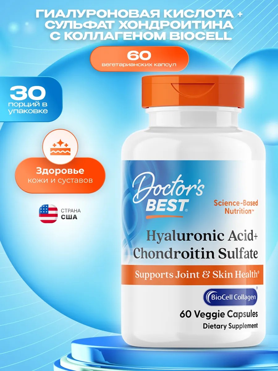 Гиалуроновая кислота и хондроитина сульфат — это эффективная добавка производства компании Doctor's Best. В ее состав входит запатентованный коллаген BioCell, а также сульфат хондроитина и гиалуроновая кислота в легкоусвояемой форме.