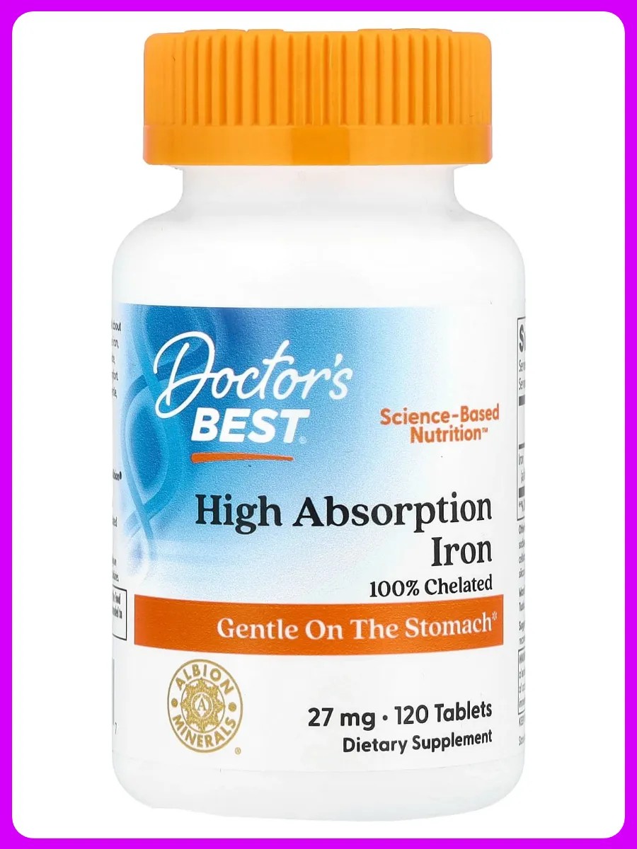 Highly absorbable iron with Ferrochel from Doctor's Best contains chelated iron for increased bioavailability.
