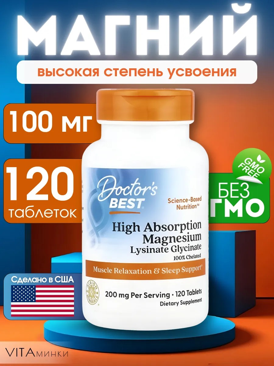 | Комплектация | Магний с высокой степенью усвоения 100 мг 120 таблеток; Doctor's Best |