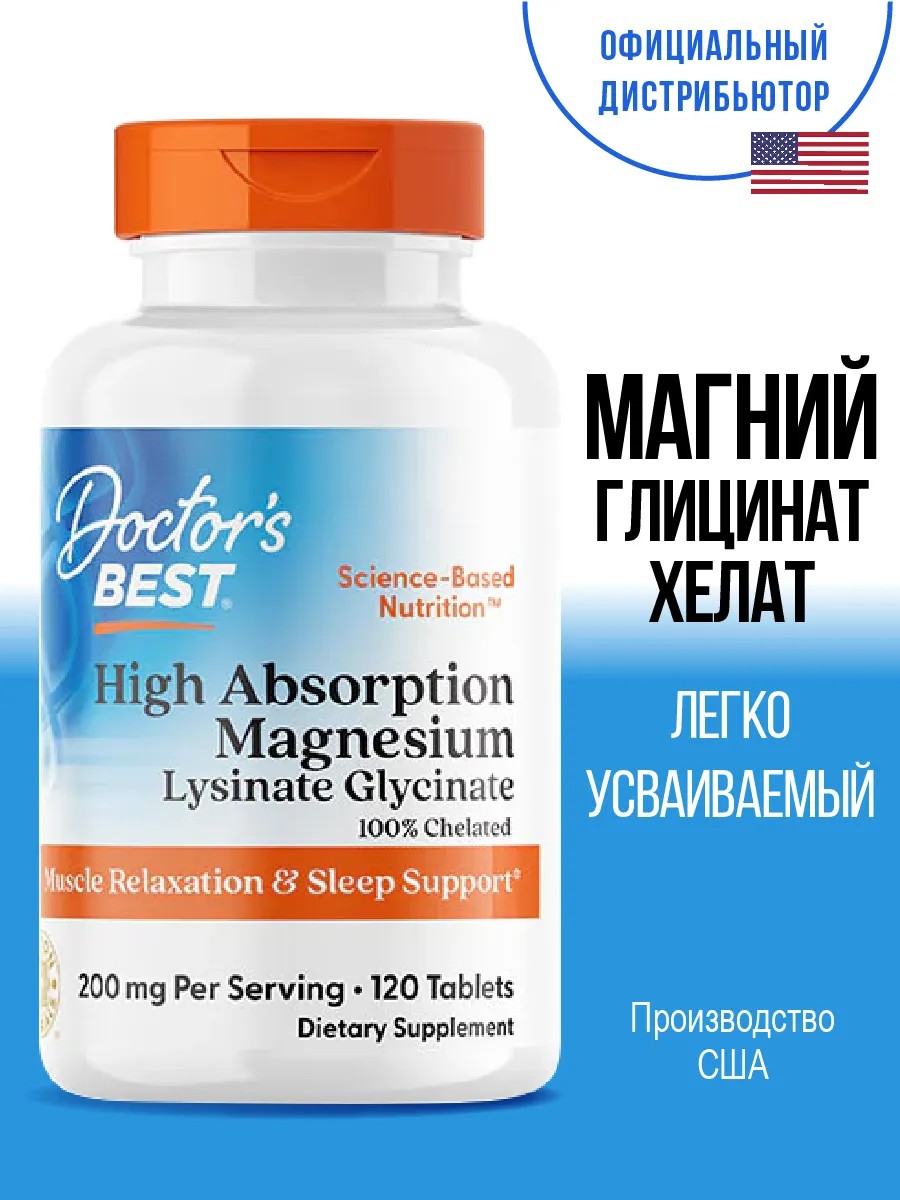Doctor's Best использует запатентованную, органическую хелатную формулу. Это позволяет магнию быть биодоступным и легко переносимым для желудочно-кишечного тракта. Веганский продукт не содержит ГМО, глютен и сою, усваивается легче, чем аналоги.