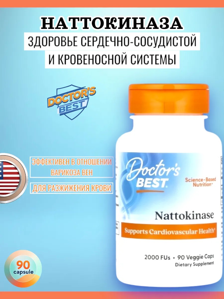 Doctor's BEST Наттокиназа Доктор Бест Nattokinase 2000 FU, 90 вег.капсул
