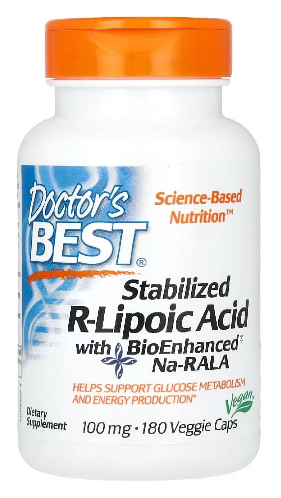 Discover the power of the stabilized R-lipoic acid with Doctor's Best. Our formula, enriched with bioenhanced NA-Rala, offers a stabilized version of the R-lipoic acid, which is essential for energy production on a cellular level and supporting a healthy nervous system.As a universal antioxidant, R-Liponic acid offers versatile support against oxidative stress and at the same time promotes glucose metabolism for improved energy efficiency.Our product is specially developed to remain stable even at high temperatures, which maximizes the bioavailability and effectiveness.Each bottle contains 180 capsules that are checked for purity and potency to optimally support your health. Ingredients ingredients Ingredients and nutritional values per daily dose (1 capsule): D-Biotin (150 mcg) (500 ), R-lipoic acid (from Bioenhanced Na-Rala R-Alpha sodium lipoat) (150 mg), modified cellulose (vegetable capsule), microcrystalline cellulose, rice powder, silicon dioxide, magnesium stearate (vegetable source) Instructions Use for adults: Take 1 capsule per day, preferably on an empty stomach or on the advice of a nutritionist. Warnings For adults only.If you are pregnant or breastfeeding, take medication or suffer from an illness, speak to your doctor before taking your doctor.Dietary supplements are not a substitute for a balanced and varied diet.Do not exceed the recommended daily dose.Must not get into the hands of children.Store in a cool, dry place. Address manufacturer importer Doctor's Best Inc. California, 92612 United States.Importer: via Abate Bruni 90, 76011 Bisceglie (BT), Italy Morepurity and potency: Made in a GMP-certified system, tested for purity and potency to ensure the highest quality freely from gluten, soy and GMOS.Antioxidative support: acts as a powerful, universal antioxidant, which acts in watery and fatty regions of the cell to protect against oxidative damage.Nerve health: promotes the health of the nervous system and protects against age -related challenges, supports cognitive function and well -being.Cell energy and metabolism: supports cellular energy production and healthy glucosa metabolism for improved vitality and quality of life.Optimized formula: Contains Bioenhananced NA-Rala for a stabilized and efficient form of R-lipoic acid, which does not degrade at high temperatures.Entdecken Sie die Kraft der Stabilisierten R-Liponsäure mit Doctor's Best. Unsere Formel, angereichert mit BioEnhanced Na-RALA, bietet eine stabilisierte Version der R-Liponsäure, die essenziell für die Energieproduktion auf zellulärer Ebene und die Unterstützung eines gesunden Nervensystems ist. Als universelles Antioxidans bietet R-Liponsäure eine vielseitige Unterstützung gegen oxidative Belastungen und fördert gleichzeitig den Glukosestoffwechsel für verbesserte Energieeffizienz. Unser Produkt ist speziell entwickelt, um auch bei hohen Temperaturen stabil zu bleiben, wodurch die Bioverfügbarkeit und Effektivität maximiert wird. Jede Flasche enthält 180 Kapseln, die auf Reinheit und Potenz geprüft sind, um Ihre Gesundheit optimal zu unterstützen. INHALTSSTOFFE ZUTATEN Zutaten und Nährwerte pro Tagesdosis (1 Kapsel): D-Biotin (150 mcg) (500 ), R-Liponsäure (aus BioEnhanced Na-RALA R-alpha Natriumlipoat) (150 mg), Modifizierte Cellulose (pflanzliche Kapsel), mikrokristalline Cellulose, Reispulver, Siliziumdioxid, Magnesiumstearat (pflanzliche Quelle) GEBRAUCHSANWEISUNG Verwendung für Erwachsene: Nehmen Sie 1 Kapsel pro Tag, vorzugsweise auf nüchternen Magen, oder auf Anraten eines Ernährungsberaters ein. WARNHINWEISE Nur für Erwachsene. Wenn Sie schwanger sind oder stillen, Medikamente einnehmen oder an einer Erkrankung leiden, sprechen Sie vor der Einnahme mit Ihrem Arzt. Nahrungsergänzungsmittel sind kein Ersatz für eine ausgewogene und abwechslungsreiche Ernährung. Überschreiten Sie nicht die empfohlene Tagesdosis. Darf nicht in die Hände von Kindern gelangen. An einem kühlen, trockenen Ort aufbewahren. ANSCHRIFT HERSTELLER IMPORTEUR Doctor's Best Inc. California, 92612 Vereinigte Staaten. Importeur: Via Abate Bruni 90, 76011 Bisceglie( BT), Italien MehrReinheit und Potenz: Hergestellt in einer GMP-zertifizierten Anlage, getestet auf Reinheit und Potenz, um die höchste Qualität sicherzustellen Frei von Gluten, Soja und GMOs. Antioxidative Unterstützung: Wirkt als mächtiges, universelles Antioxidans, das sowohl in wässrigen als auch in fetthaltigen Regionen der Zelle agiert, um gegen oxidative Schäden zu schützen. Nervengesundheit: Fördert die Gesundheit des Nervensystems und schützt vor altersbedingten Herausforderungen, unterstützt die kognitive Funktion und das Wohlbefinden. Zellenergie und Metabolismus: Unterstützt die zelluläre Energieproduktion und einen gesunden Glukosemetabolismus für verbesserte Vitalität und Lebensqualität. Optimierte Formel: Enthält BioEnhanced Na-RALA für eine stabilisierte und effiziente Form der R-Liponsäure, die nicht bei hohen Temperaturen degradiert.Doctor's Best - Stabilisiertes R-Liponsäure-Nahrungsergänzungsmittel mit BioEnhanced Na-RALA Unterstützt die Zellenergie und Nervengesundheit - 180 Kapseln