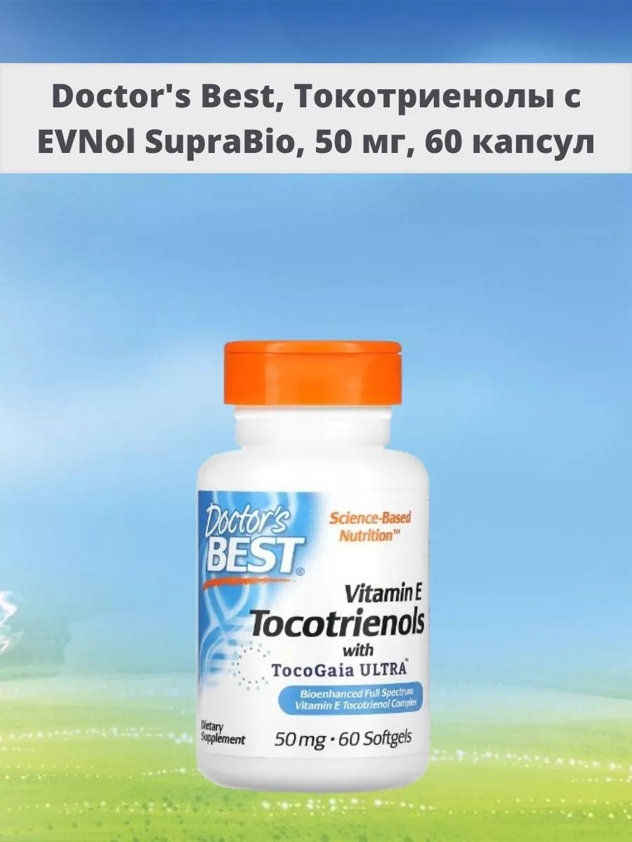 Токотриенол Doctors Best содержит комплекс витамина E полного спектра EVNol SupraBio. Этот препарат, изготовленный из красного пальмового масла экологически чистого производства, обладает уникальной самоэмульгирующей способностью для эффективного усвоения. Он повышает уровень токотриенолов в крови, головном мозге, сердце, печени и коже, сохраняя при этом уровень альфа-токоферола. Этот уникальный препарат также улучшает функцию стенок кровеносных сосудов и помогает поддерживать здоровый уровень холестерина в пределах нормы.