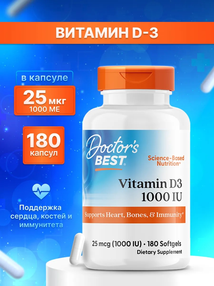 Doctor's BEST Витамин Д3 25 мкг 180 гел. капсул, Vitamin D-3 (1000 IU)