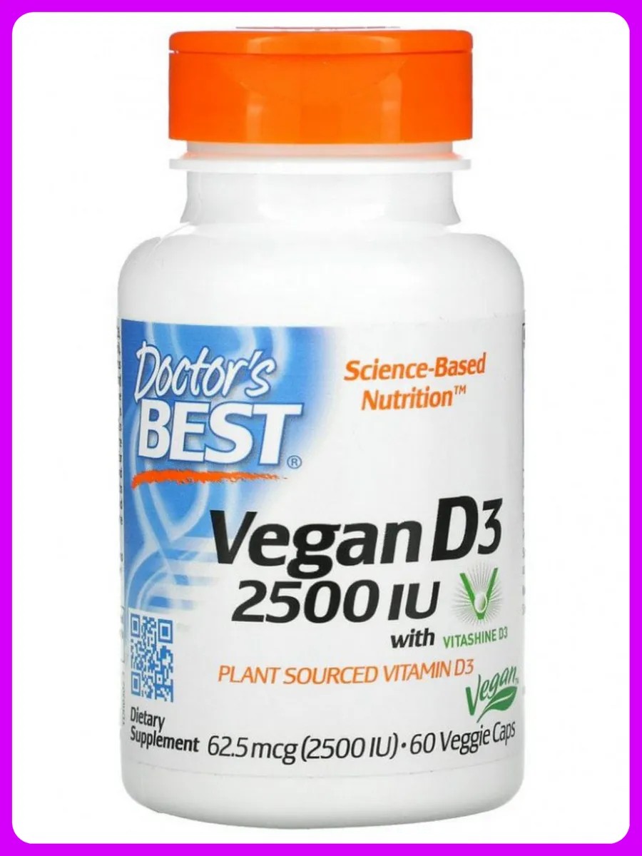Витамин D3 – один из важнейших элементов в организме. Капсулы с витамином Д3 в дозировке 2500 МЕ от Doctor's Best— это идеальный выбор для тех, кто заботится о своем здоровье, укреплении костей и иммунной системе. Пищевая добавка содержит Vitashine D3, растительный источник витамина D3 (в виде холекальциферола). Vitashine производится с использованием специального экстракта лишайника - небольшого уникального вида растений - и поставляется в виде холекальциферола, который лучше усваивается организмом для достижения наилучших результатов. Тем более, что витамин D играет важную роль в большинстве органов и систем организма, регулирует уровень фосфора и кальция, благотворно влияет на состояние кожи, волос, ногтей, что делает его универсальным витамином как для женщин, так для мужчин.