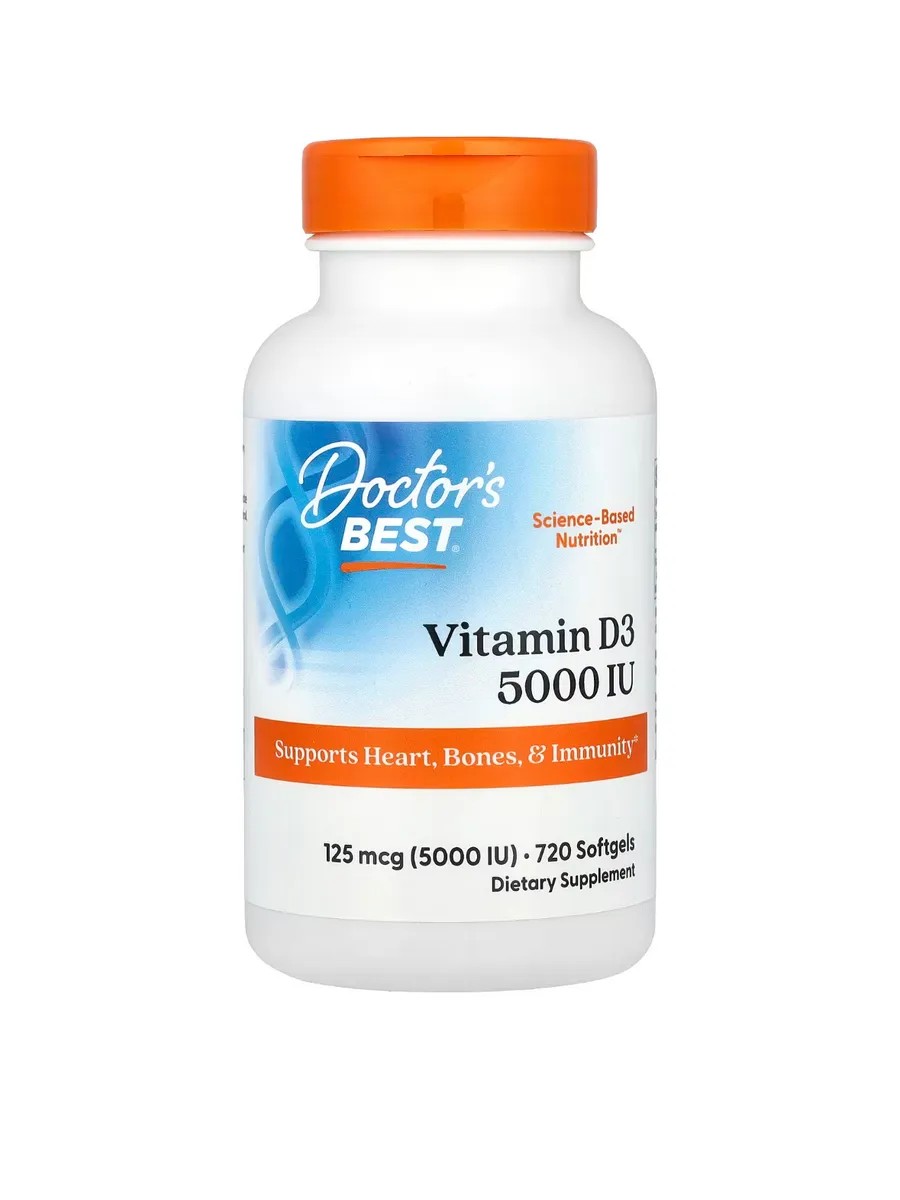 Витамин D3 от Doctor's Best содержит D3 (в виде холекальциферола), необходимый организму для регулирования уровня фосфора и кальция, способствующего здоровью костей, зубов и сердца. Витамин D3 вырабатывается в коже за счет поглощения солнечных УФ-лучей и в ограниченных количествах поступает с пищей. Защита от солнца и климатические факторы могут влиять на низкий уровень витамина D3. Витамин D3 полезен для иммунной и сердечно-сосудистой систем, плотности и структуры костей, а также функционирования клеток. Он играет важную роль в работе большинства органов и систем организма и влияет на химические посредники иммунной системы.