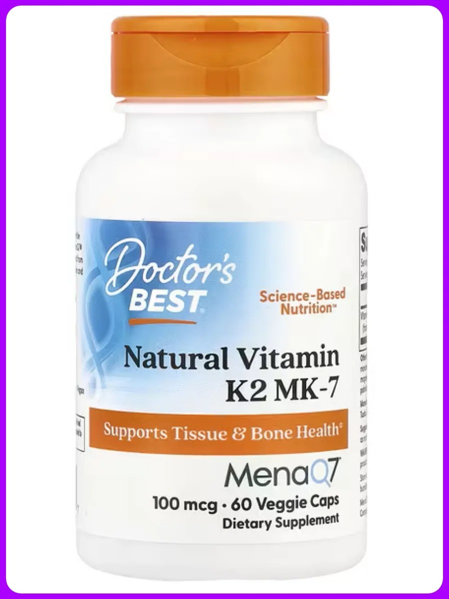 Натуральный витамин K2 от Doctor's Best содержит MenaQ7, клинически проверенный и запатентованный витамин K2 под названием MK-7. К2 — это улучшенная форма витамина К, называемая менахинонами, которая показала большую биодоступность, чем более часто используемый витамин К1. Эта добавка для ежедневного приема, содержащая очищенное из ферментированного нута действующее вещество, является отличным способом доставить витамин К2 в кости, кровеносные сосуды и другие мягкие ткани, способствуя усвоению кальция.