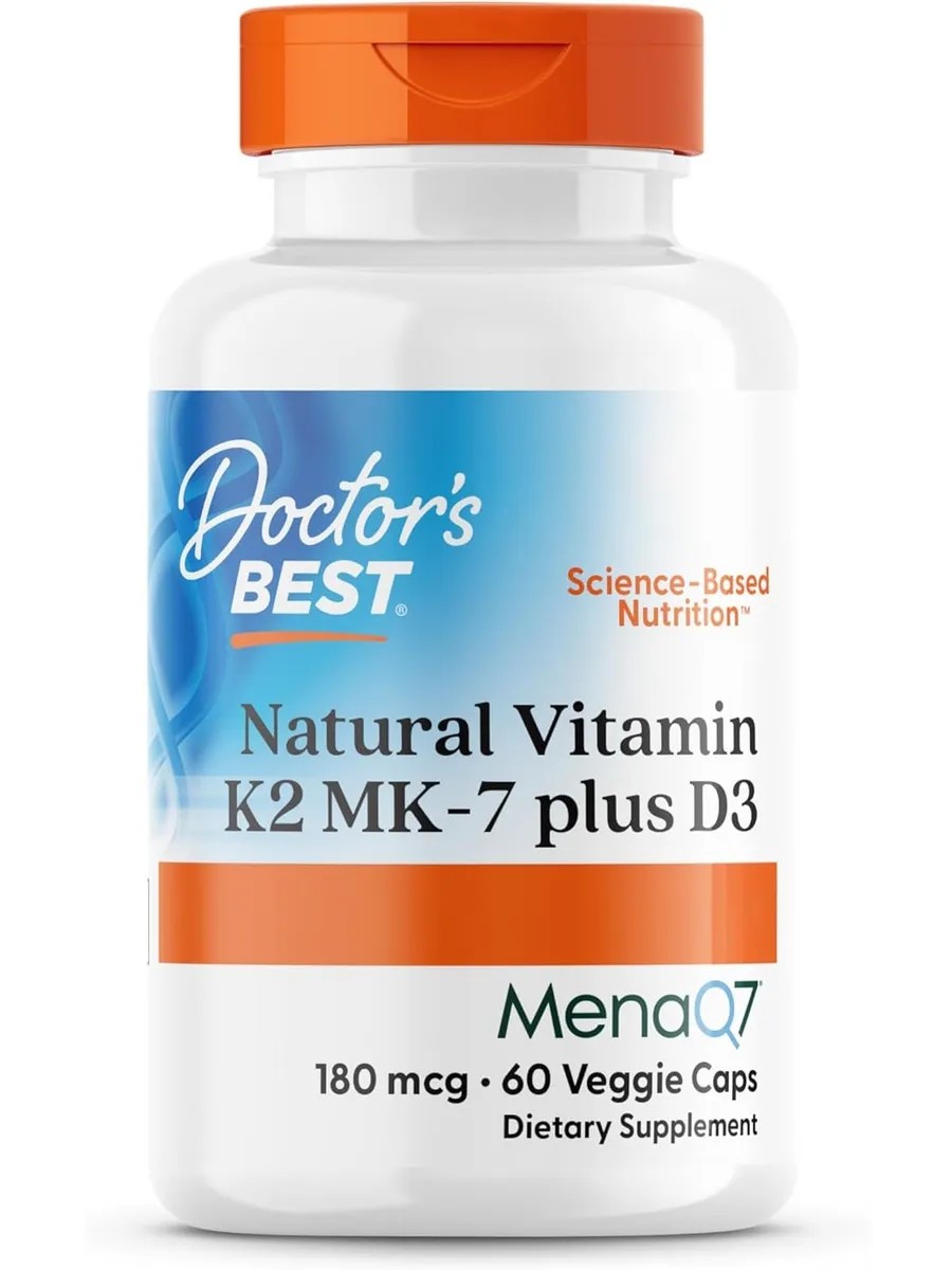 Doctor's Best Natural Vitamin K-2 MK-7 with MenaQ7 plus D-3 / Витамин K-2 MK-7 180 мкг + Витамин Д-3 25 мкг 60 вегетарианских капсул