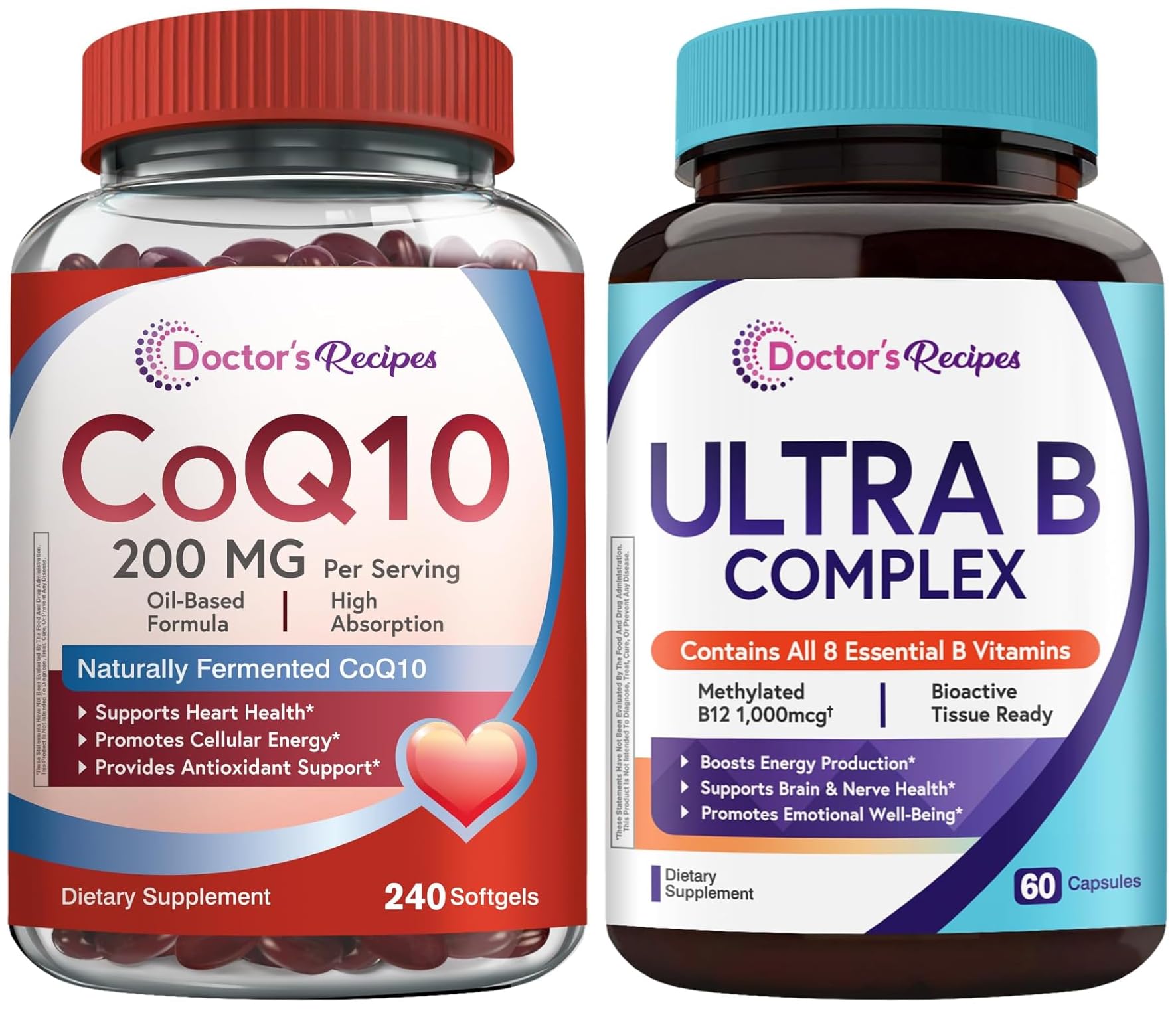 Doctor's Recipes CoQ10 200mg + Vitamin B Complex Bundle High Absorption Coenzyme Q10 with Olive Oil & Complete B Vitamins Energy Metabolism & Daily Support 300 Total Capsules