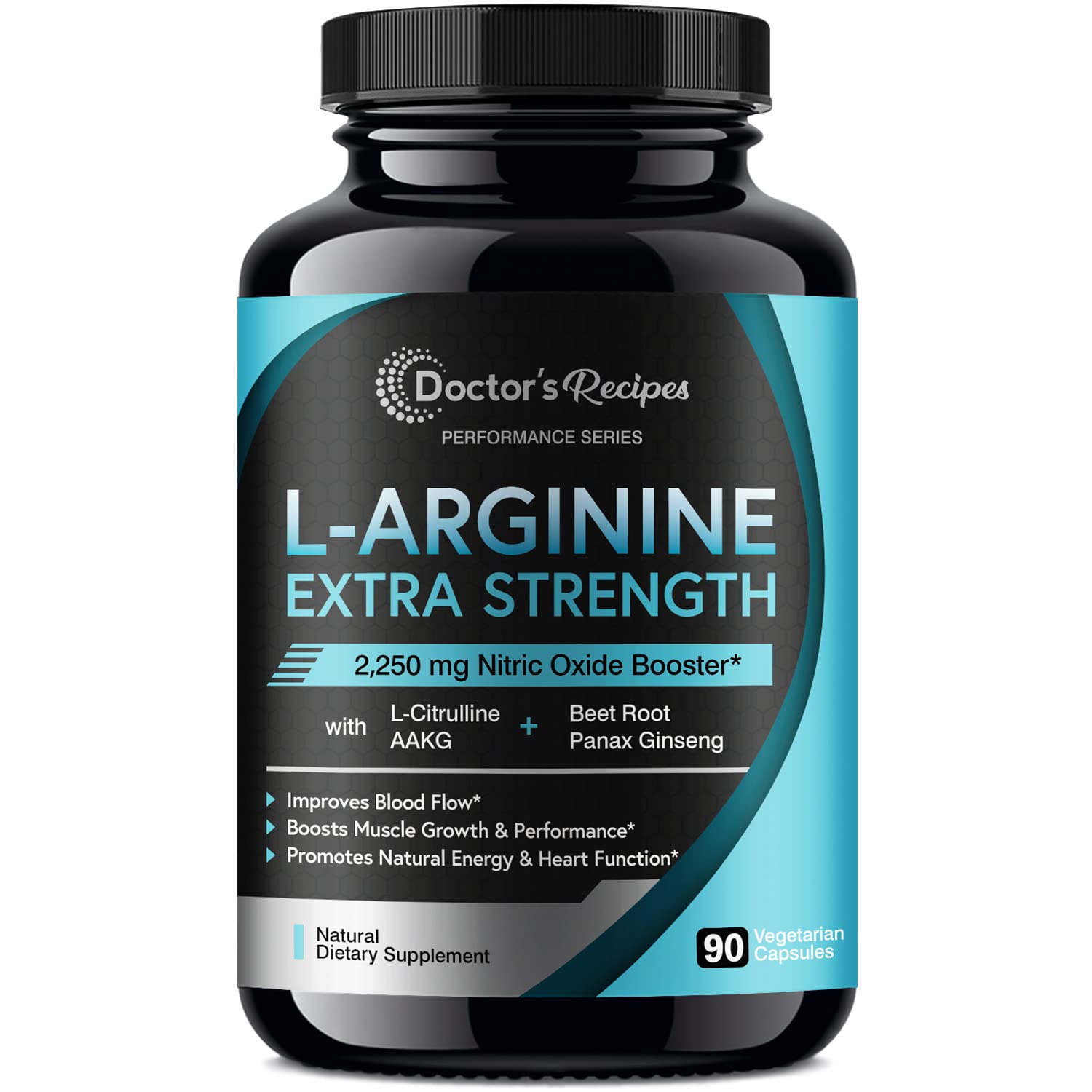 Doctor’s Recipes L-Arginine for Men & Women 90 Caps, AAKG, L-Citrulline, Beet Root & Panax Ginseng, 2250 mg High Dose NO Booster for Muscle, Vascularity, Performance, Energy & Heart Health, Non-GMO