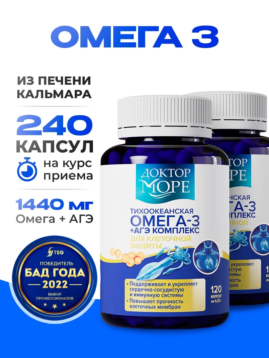 Доктор море БАД омега 3 в капсулах, рыбий жир+АГЭ комплекс курс на месяц