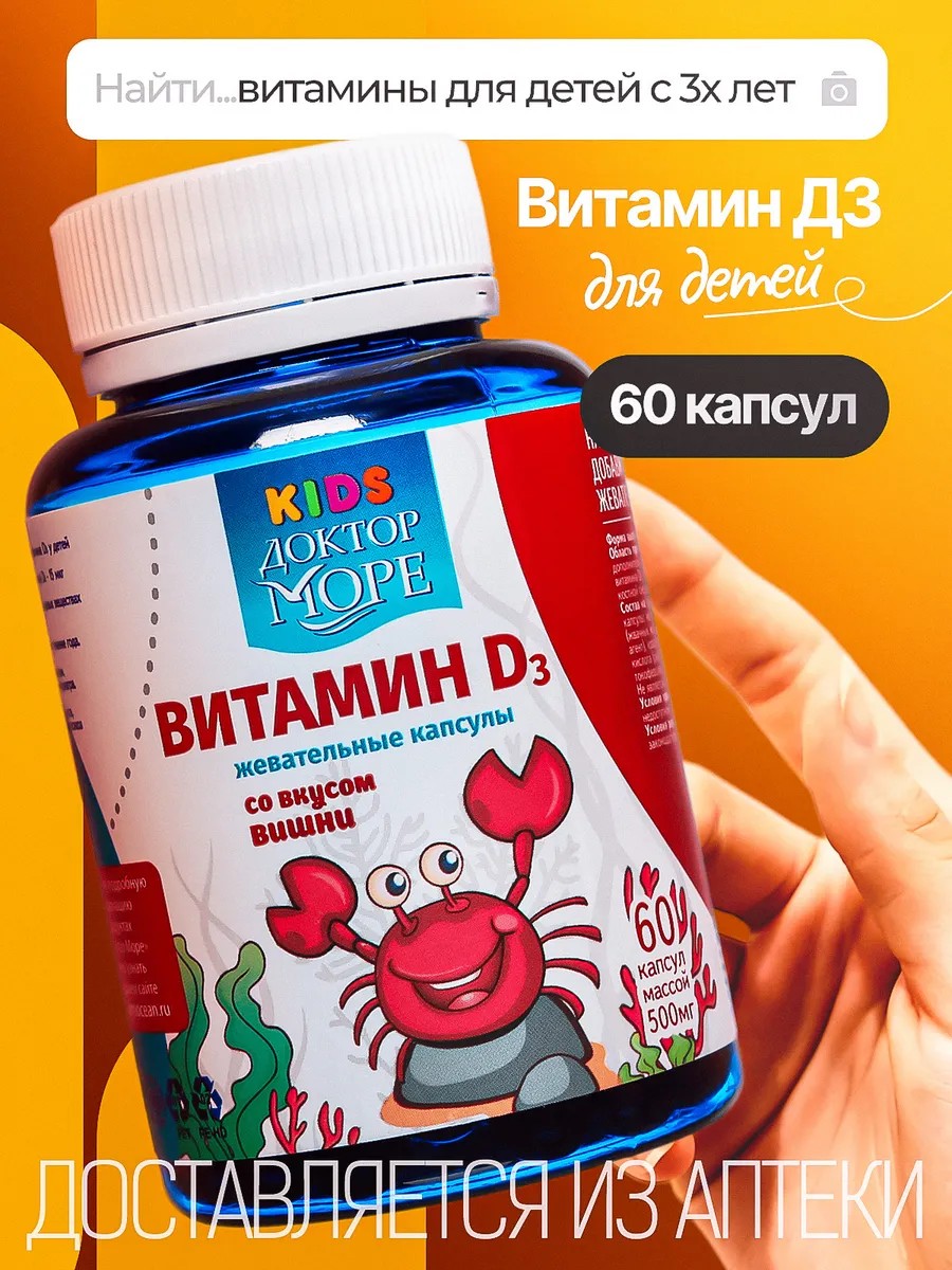 Витамин D3 детские жевательные капсулы со вкусом вишни