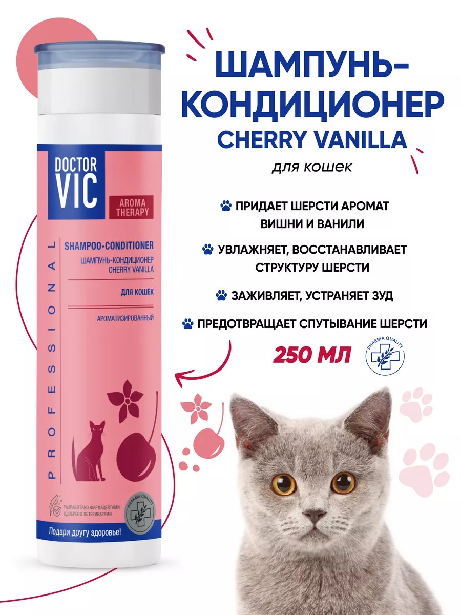 Doctor VIC Шампунь-кондиционер 2 в 1 для кошек, увлажняет
