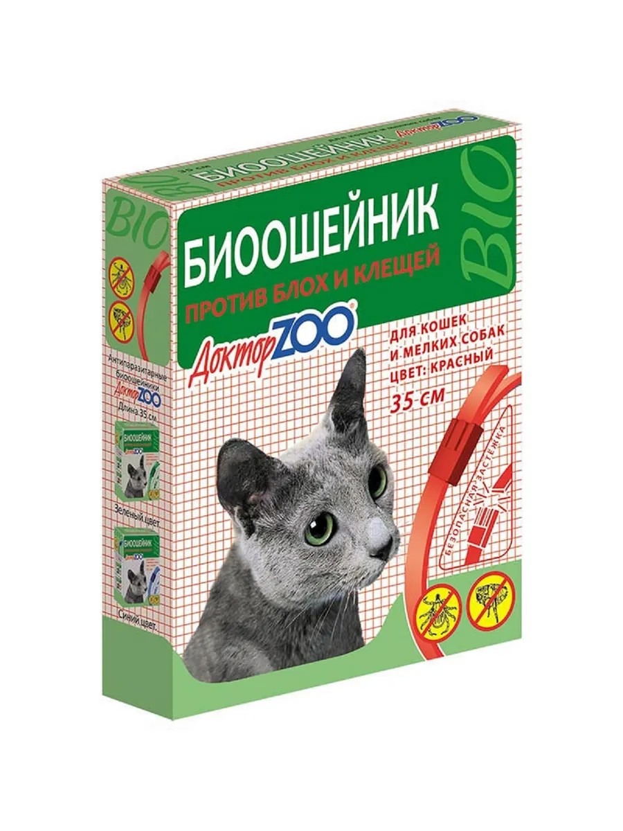 Доктор Зоо Биоошейник от блох клещей для мелких собак и кошек красный 35см. Ошейник изготовлен на основе природного репеллента – масла герани, постоянное выделение которого в течение всего срока использования обеспечивает надежную и безопасную защиту животного.