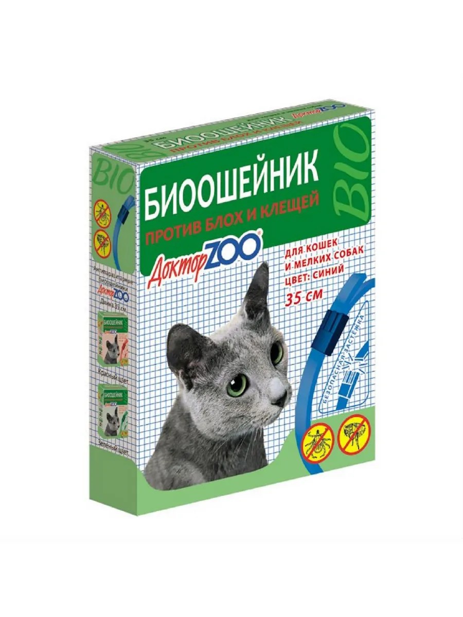 Доктор Зоо Биоошейник от блох клещей для мелких собак и кошек синий 35см. Ошейник изготовлен на основе природного репеллента – масла герани, постоянное выделение которого в течение всего срока использования обеспечивает надежную и безопасную защиту животного.