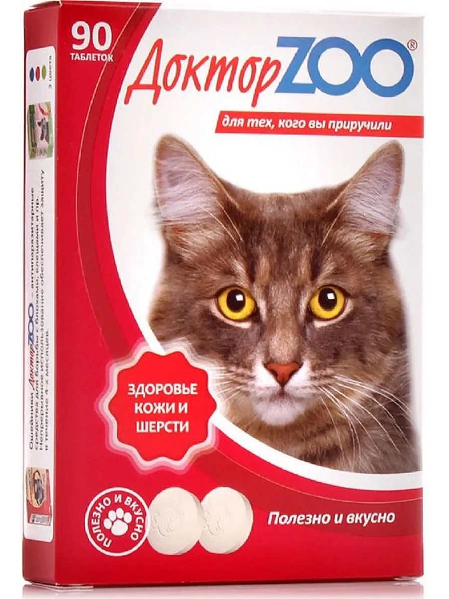 Dr. Zoo Multivitamin Treat for Cats, 90 Tablets. Biotin (vitamin H) is essential for nourishing the skin and coat. It promotes growth, fullness, silkiness, and vibrant color of animal fur, prevents skin inflammation, and makes it resistant to microdamage. A biotin deficiency can cause hair loss, itching, and brittle hair and claws. Taurine is essential for maintaining normal heart function, strengthens the immune system, normalizes liver and kidney function, and improves gastrointestinal function. Cats do not synthesize taurine in their bodies and must obtain it from food. Taurine deficiency leads to suppressed reproductive function, weakened vision, hair loss, and dental caries. Also, a taurine deficiency can lead to growth retardation in kittens and young animals. Ingredients: baker's yeast, bone meal, powdered milk, vitamins, amino acids, and minerals.