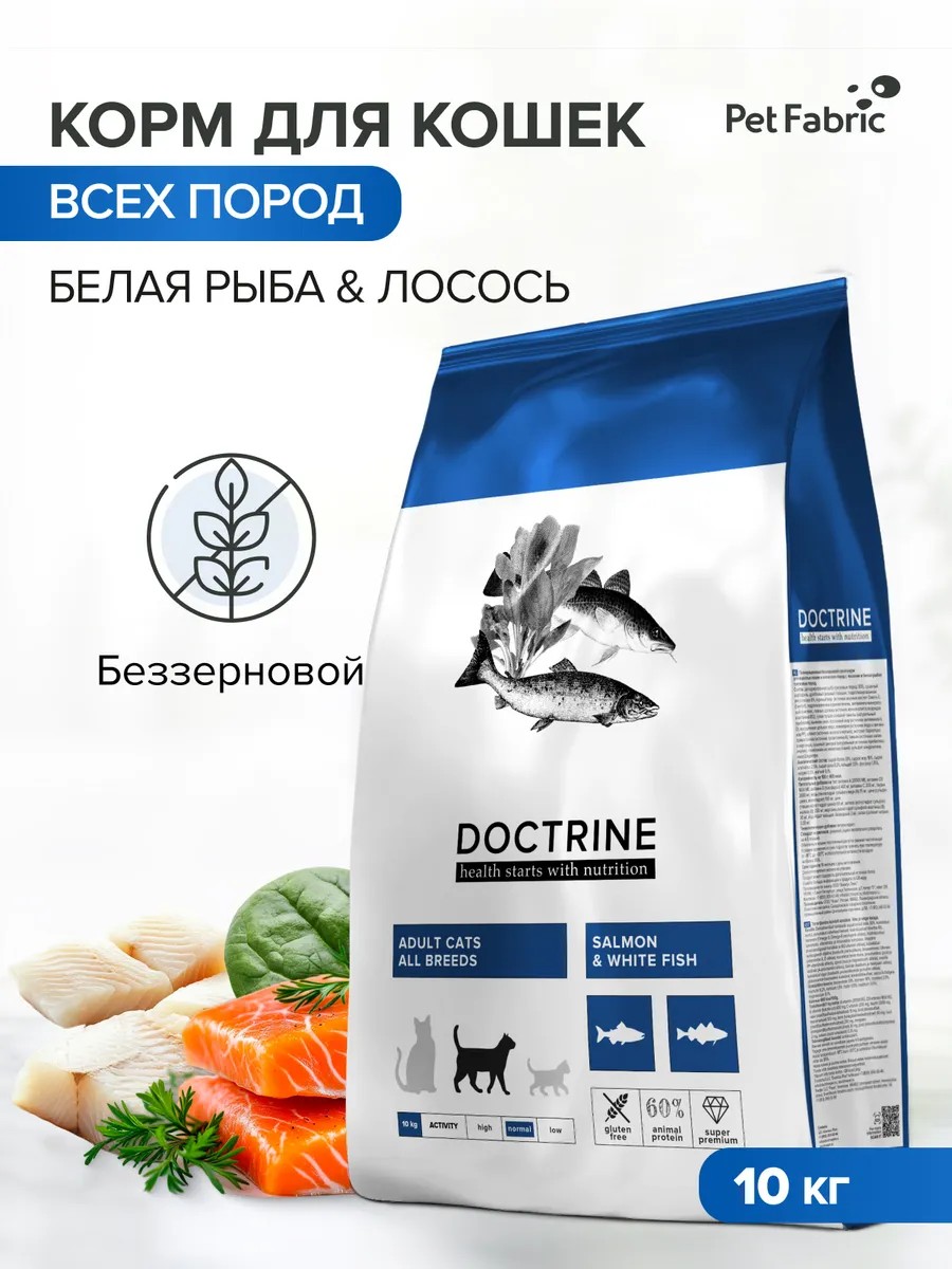 DOCTRINE Сухой корм для кошек с лососем и белой рыбой 800 г 3 кг 10 кг
