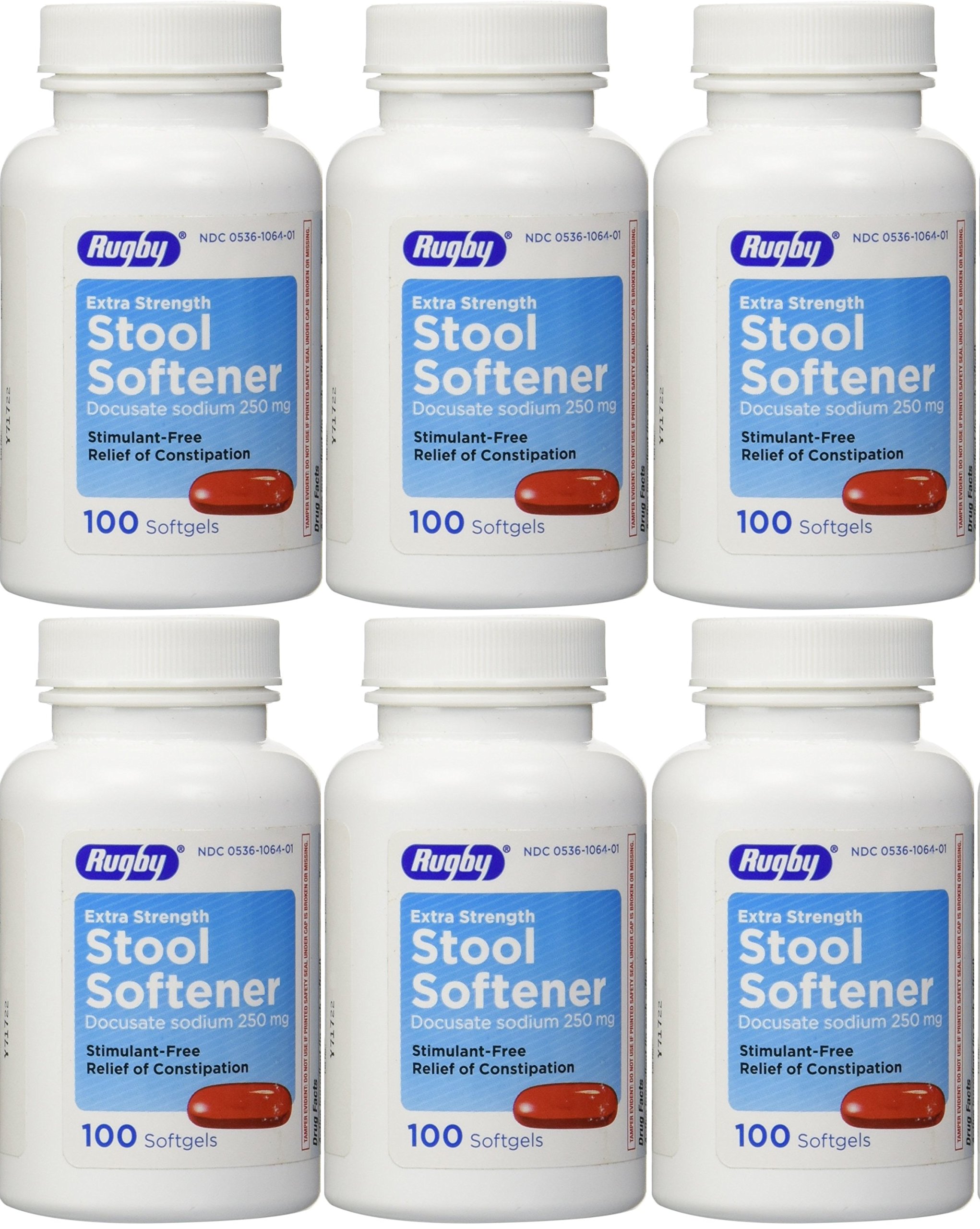 Docusate Sodium Extra Strenght 250 mg 600 Softgels for Gentle Reliable Relief from Occasional Constipation 100 Softgels per Bottle Pack of 6 Bottles