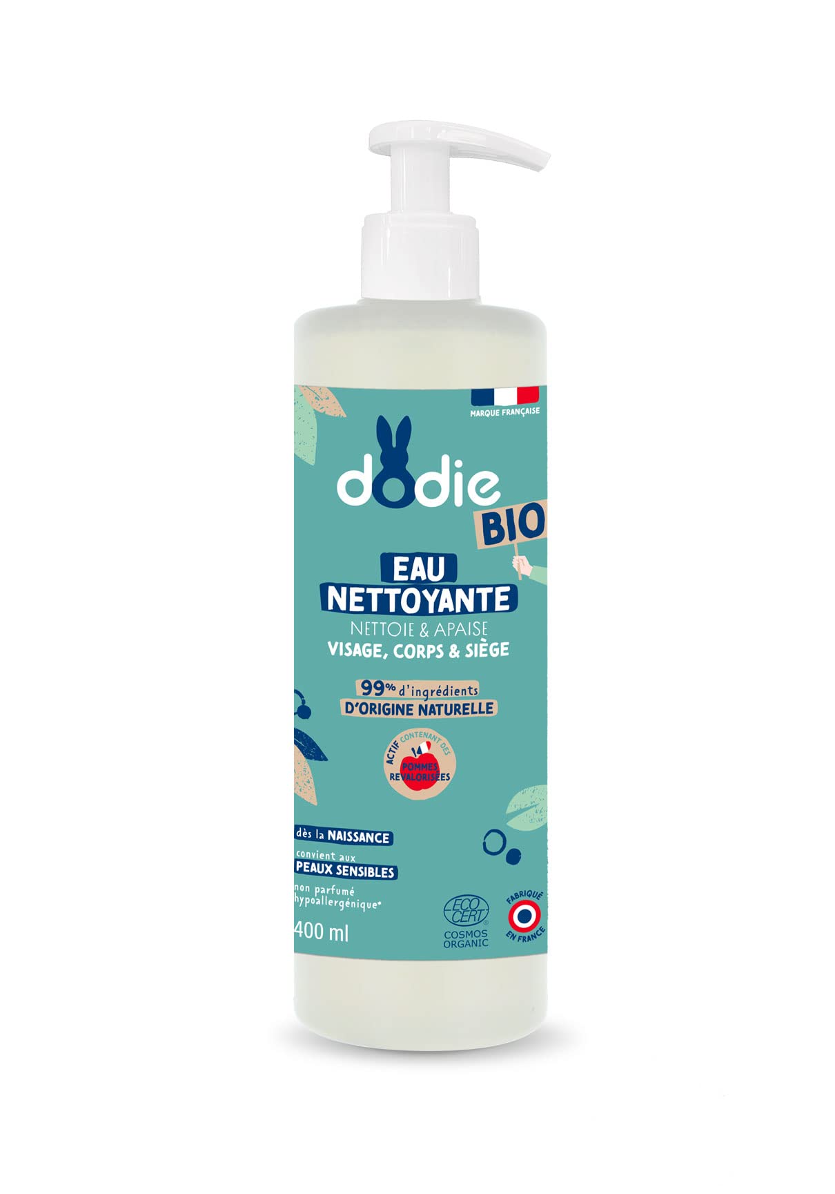 Dodie sought inspiration in French orchards: organic apples, rich in antioxidants, harvested before they are ripe to allow other apples to ripen in peace. Dodie is committed to supporting fruit growers by promoting these small, inedible fruits. Made in France with 99 ingredients of natural origin, Dodie's certified organic Cleansing Water is hypoallergenic and unscented. It just goes to show that you can be as small as a potato and still take care of your skin and the orchards! Formulated to minimize the risk of allergiesMade in France. Suitable from birth. Hypoallergenic , unscented, suitable for sensitive skin. Dermatologically and ophthalmologically tested. Yuka rating Excellent (100 100). 99 ingredients of natural origin - Cosmos certified organic. C'est dans les vergers français, que Dodie est allé chercher l'inspiration : des pommes bio, riches en anti-oxydants, récoltées avant leur maturité pour laisser les autres pommes murir en toute sérénité. Dodie s'engage auprès des arboriculteurs, en valorisant ces petits fruits non consommables. Fabriquée en France avec 99 d'ingrédients d'origine naturelle, l'eau Nettoyante certifiée BIO Dodie est hypoallergénique et non parfumée. Comme quoi, on peut être haut comme trois pommes et déjà prendre soin de sa peau et des vergers ! Formulé pour minimiser les risques d'allergieFabriqué en France. Adapté dès la naissance. Hypoallergénique , non parfumé, convient aux peaux sensibles. Testé sous contrôle dermatologique et ophtalmologique. Note Yuka Excellent (100 100). 99 d'ingrédients d'origine naturelle - Certifié BIO Cosmos.
