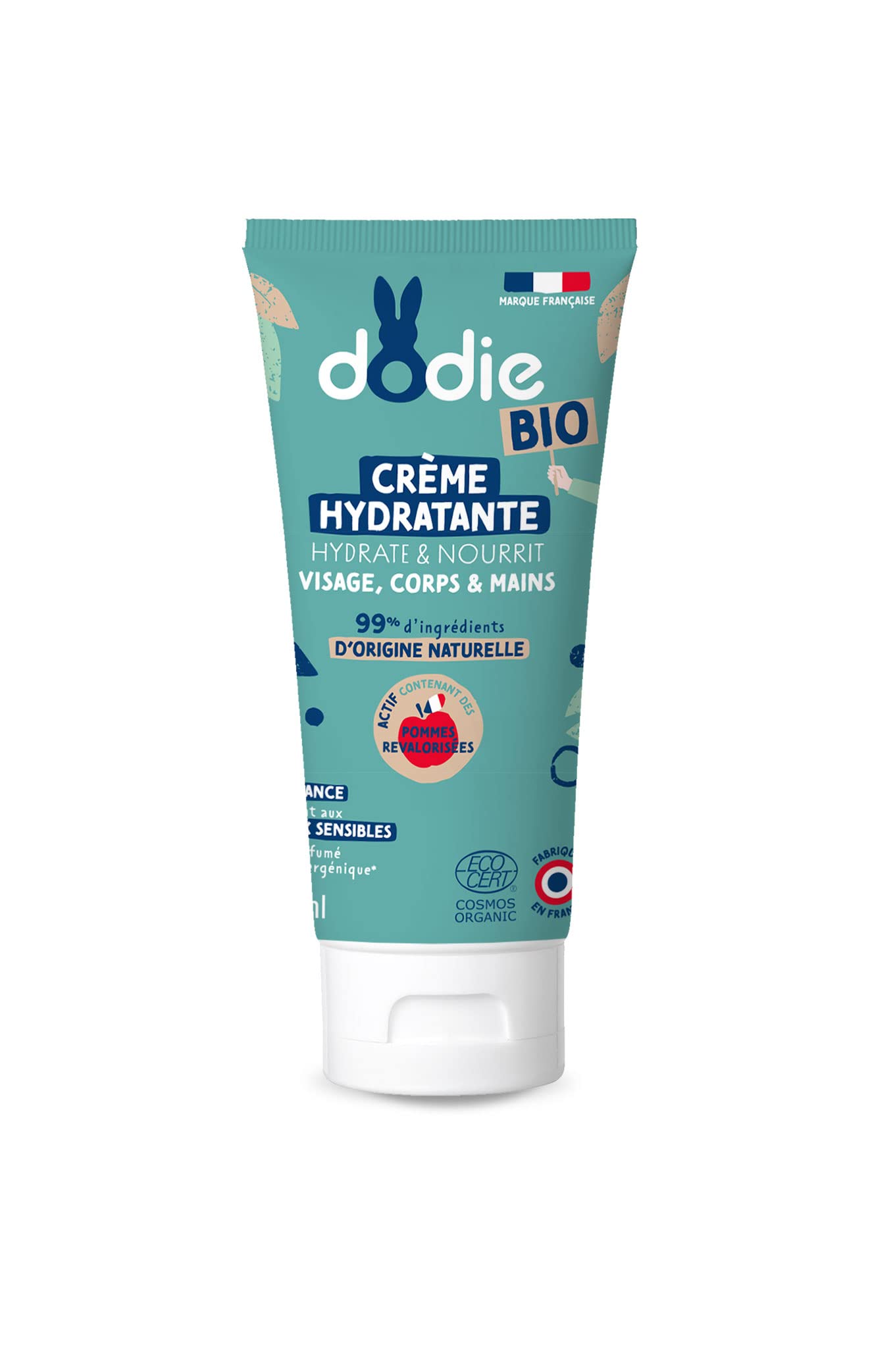 Dodie sought inspiration in French orchards: organic apples, rich in antioxidants, harvested before they are ripe to allow other apples to ripen in peace. Dodie is committed to supporting fruit growers by promoting these small, inedible fruits. Made in France with 99 ingredients of natural origin, Dodie's certified organic Moisturizing Cream is hypoallergenic and unscented. Dodie is committed to recyclable packaging made from 18 recycled plastic. It just goes to show that you can be as small as a potato and still take care of your skin and the orchards! Formulated to minimize the risk of allergiesMade in France. Suitable from birth. Hypoallergenic , unscented, suitable for sensitive skin. Dermatologically tested. Yuka rating Excellent (100 100). 99 ingredients of natural origin - Cosmos certified organic. C'est dans les vergers français, que Dodie est allé chercher l'inspiration : des pommes bio, riches en anti-oxydants, récoltées avant leur maturité pour laisser les autres pommes murir en toute sérénité. Dodie s'engage auprès des arboriculteurs, en valorisant ces petits fruits non consommables. Fabriquée en France avec 99 d'ingrédients d'origine naturelle, la Crème Hydratante certifiée BIO Dodie est hypoallergénique et non parfumée. Dodie s'engage avec un emballage recyclable et conçu à partir de 18 de plastique recyclé. Comme quoi, on peut être haut comme trois pommes et déjà prendre soin de sa peau et des vergers ! Formulé pour minimiser les risques d'allergieFabriqué en France. Adapté dès la naissance. Hypoallergénique , non parfumé, convient aux peaux sensibles. Testé sous contrôle dermatologique. Note Yuka Excellent (100 100). 99 d'ingrédients d'origine naturelle - Certifié BIO Cosmos.
