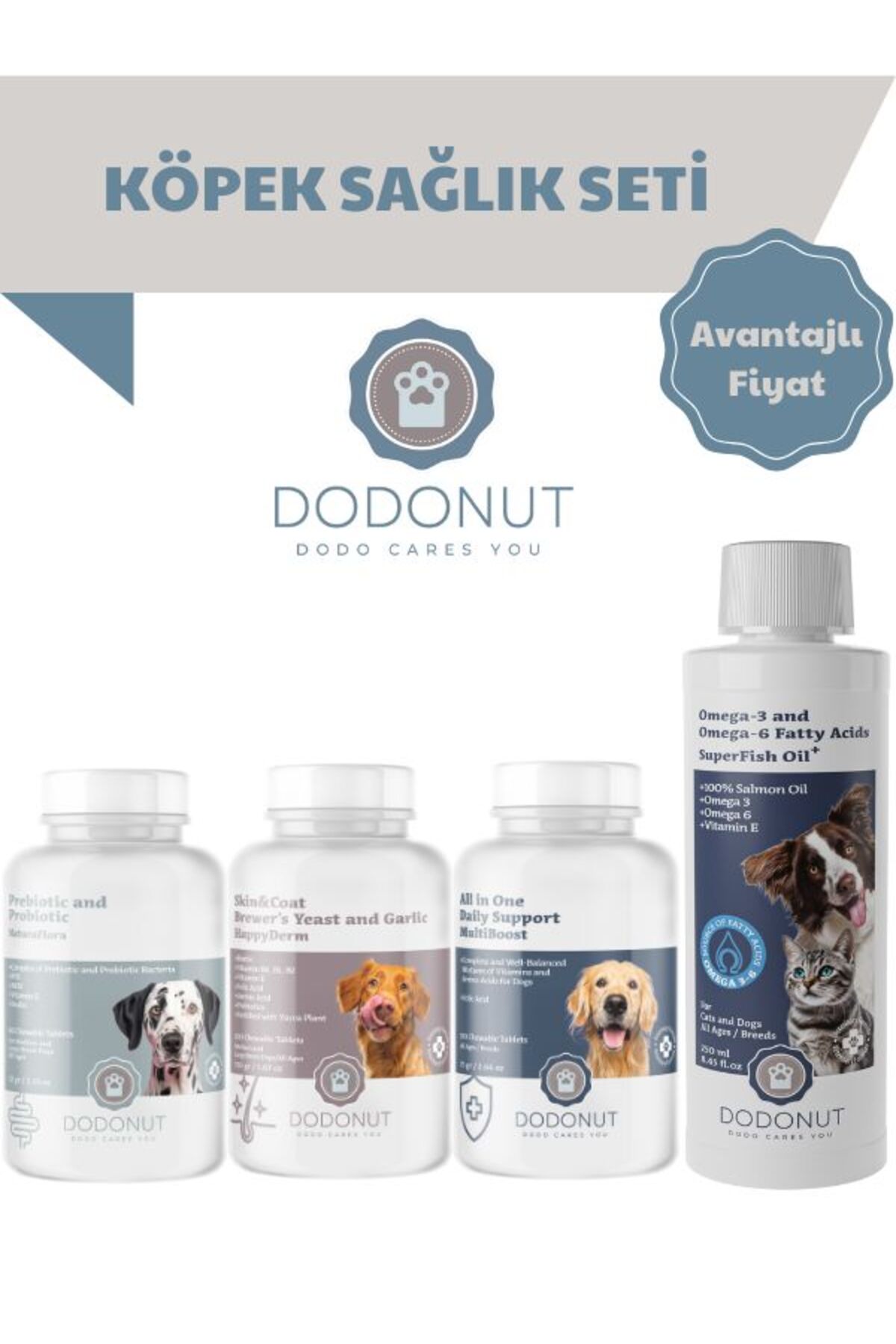 DODONUT Dog Health Set of 4 Probiotic Skin and Fur Health Multivitamin Natural Salmon Oil