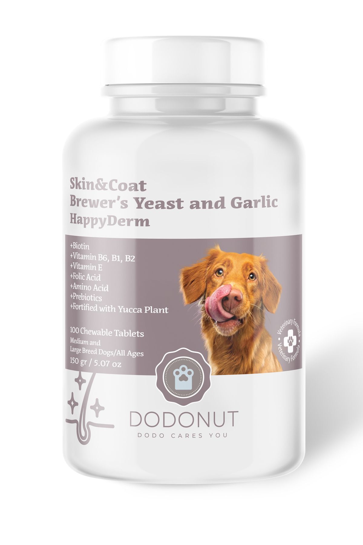 DODONUT Happyderm Large and Medium Breed Dogs Biotin Added Skin and Coat Health Nutritional Supplement 100 Tablets