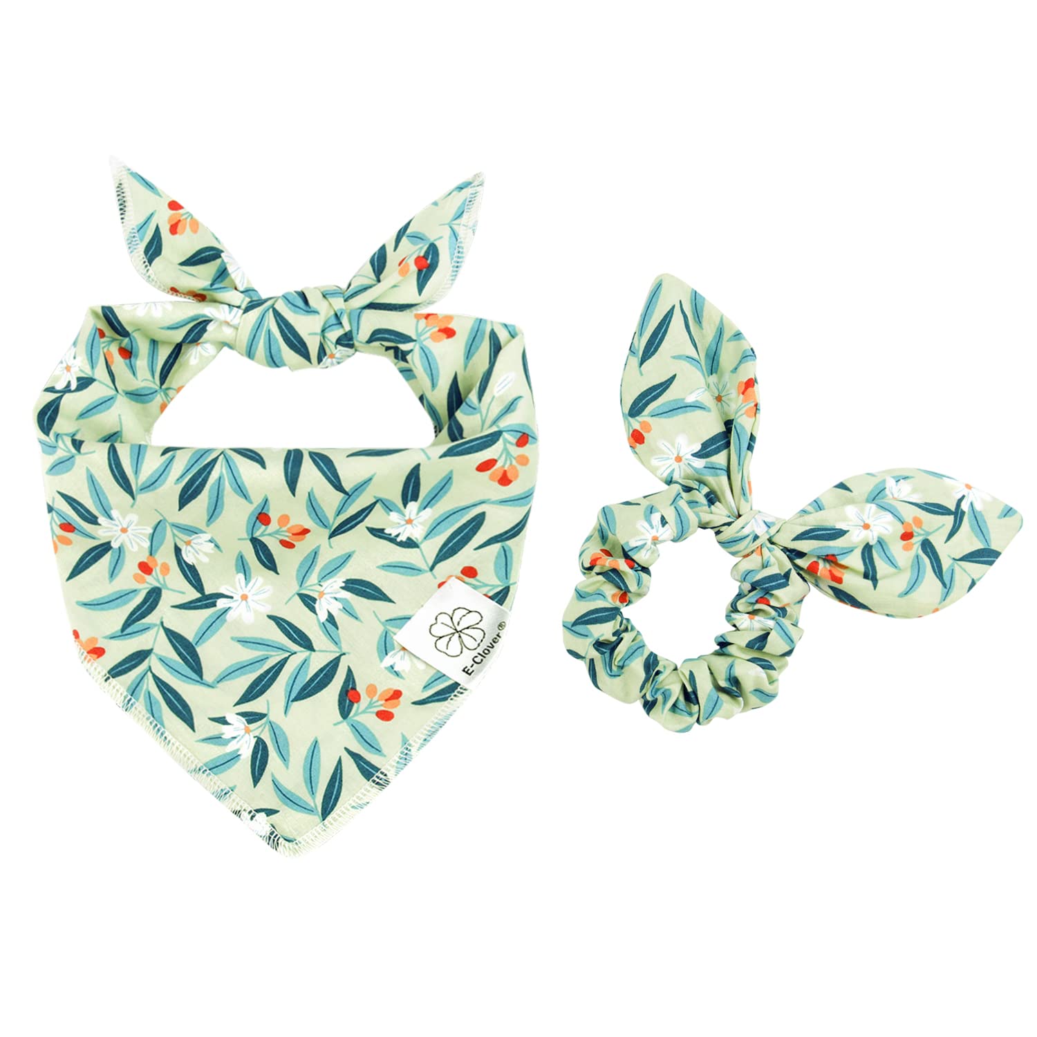 Dog Bandanas & Matching Scrunchie Set Girl Dog Bandana Scarf Washable Kerchief Bibs for Medium Large Dogs Pet Owner Birthday Gift Green 05-green white Large