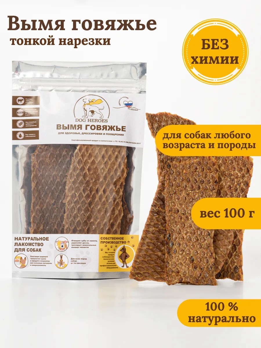 DOG HEROES Вымя говяжье тонкой нарезки 100 грамм