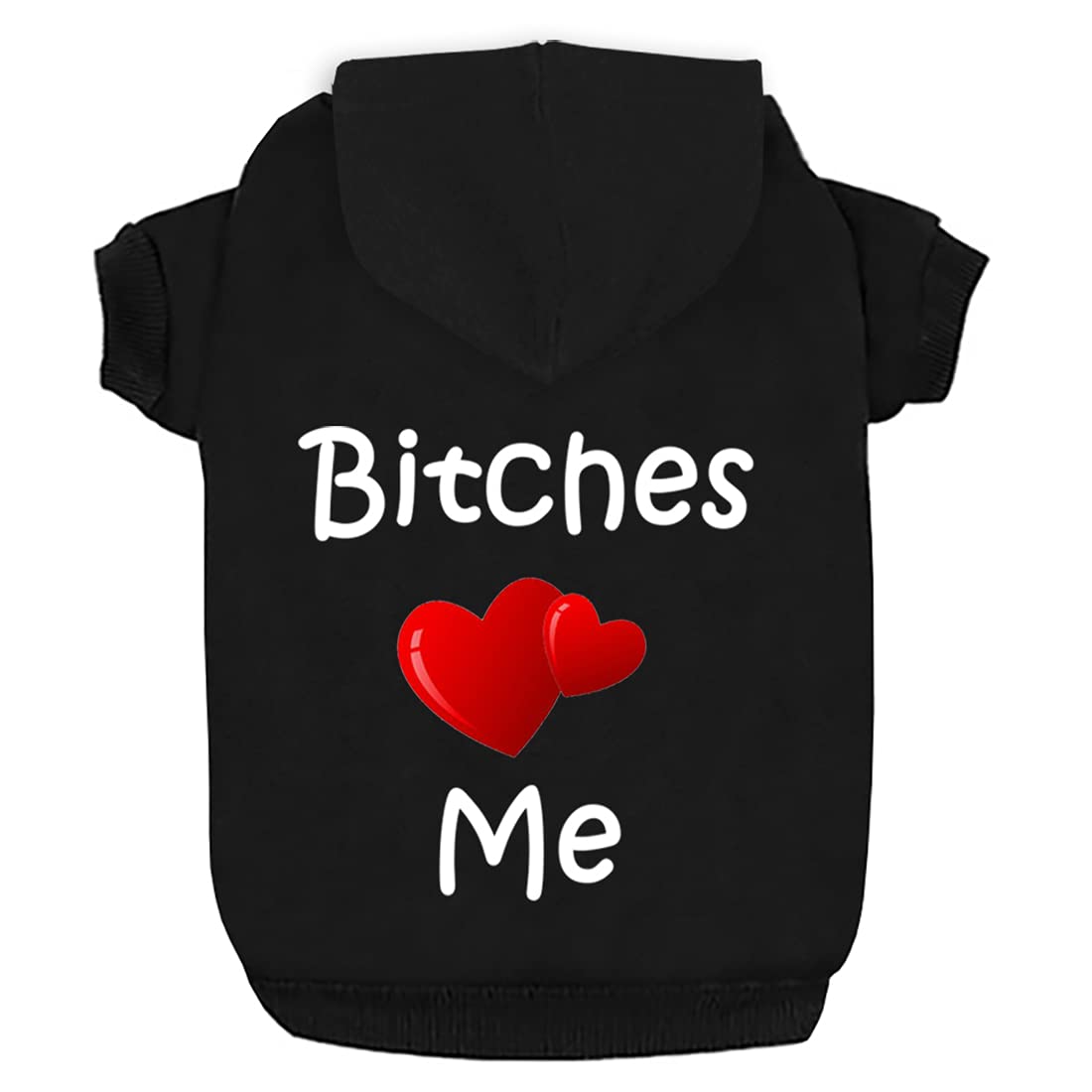 Warm and comfortable - ribbed sleeves and waist ensure a comfortable fit.Keep your puppy warm and stylish.Keep your dog actively and run free.Due to the soft, breathable and light material, your sweet dog feels more comfortable and warm in the cold autumn and winter.Classic and trendy - classic and fashionable "Bitches love me" pattern and red heart make your pet funnier, like a game boy.High quality material and workmanship - main material: 70 cotton, 30 polyester and mix soft fleece interior.100 brand new double thread sewing makes the clothing more durable.Tips: This hoodie is suitable for small dogs, medium dogs and large dogs.Please do not choose size according to the usual size of your dog.Every manufacturer may have a different size.Please measure your pet carefully and choose a loose size before payment according to the size table on the left and below.Thank you!.sent: XS - neck circumference: 23 cm (9 inches), chest: 38 cm (15 inches), back length: 25.4 cm (10 inches).
